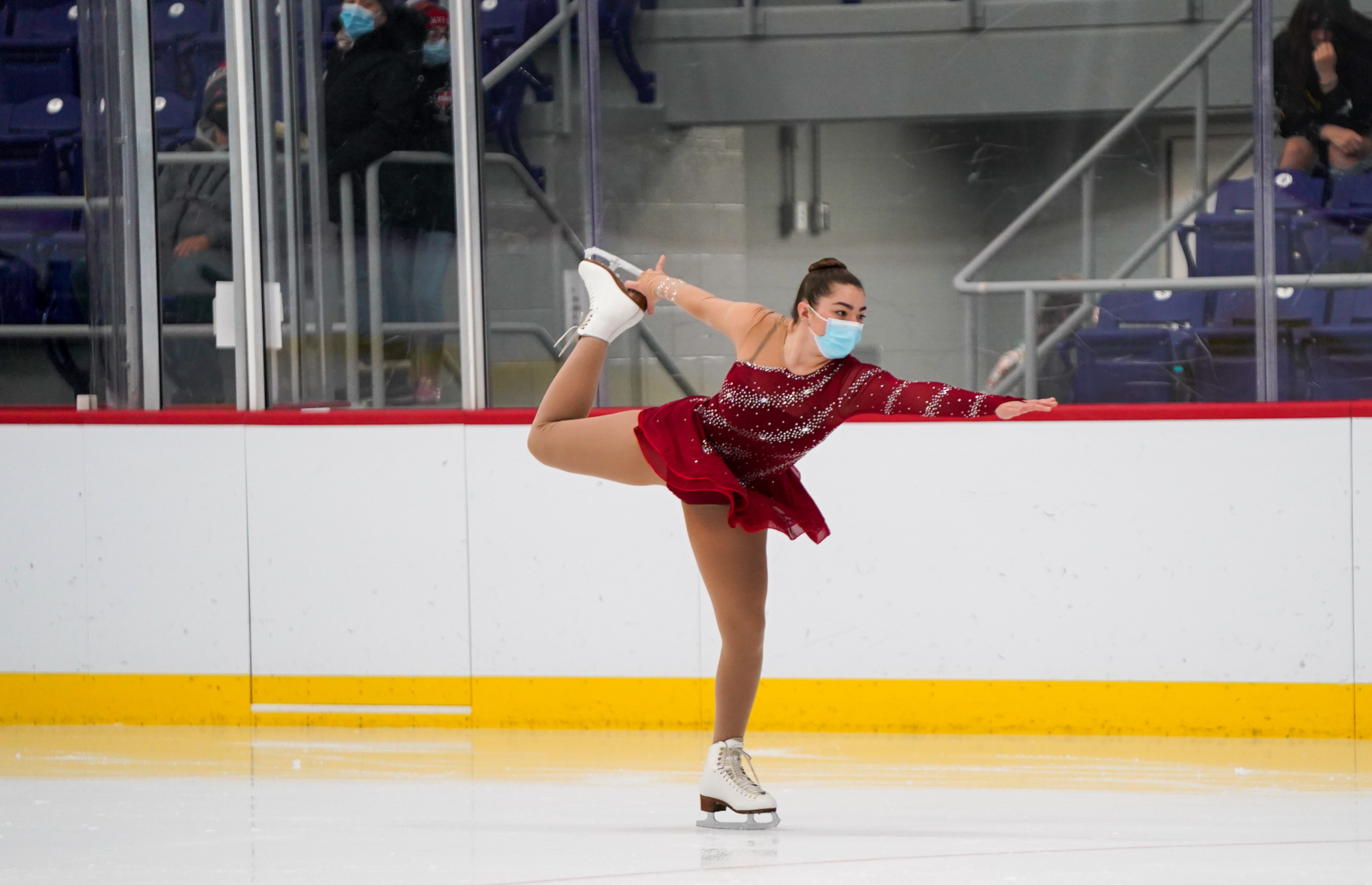 Abigail Toland with Oswego FSC (Lycoming, NY) figure skates on the 1932 ice rink in the Olympic Center during the Empire State Winter Games in Lake Placid, NY on Saturday, February 5, 2022. (Photo by Emma Vallelunga/Newhouse School)