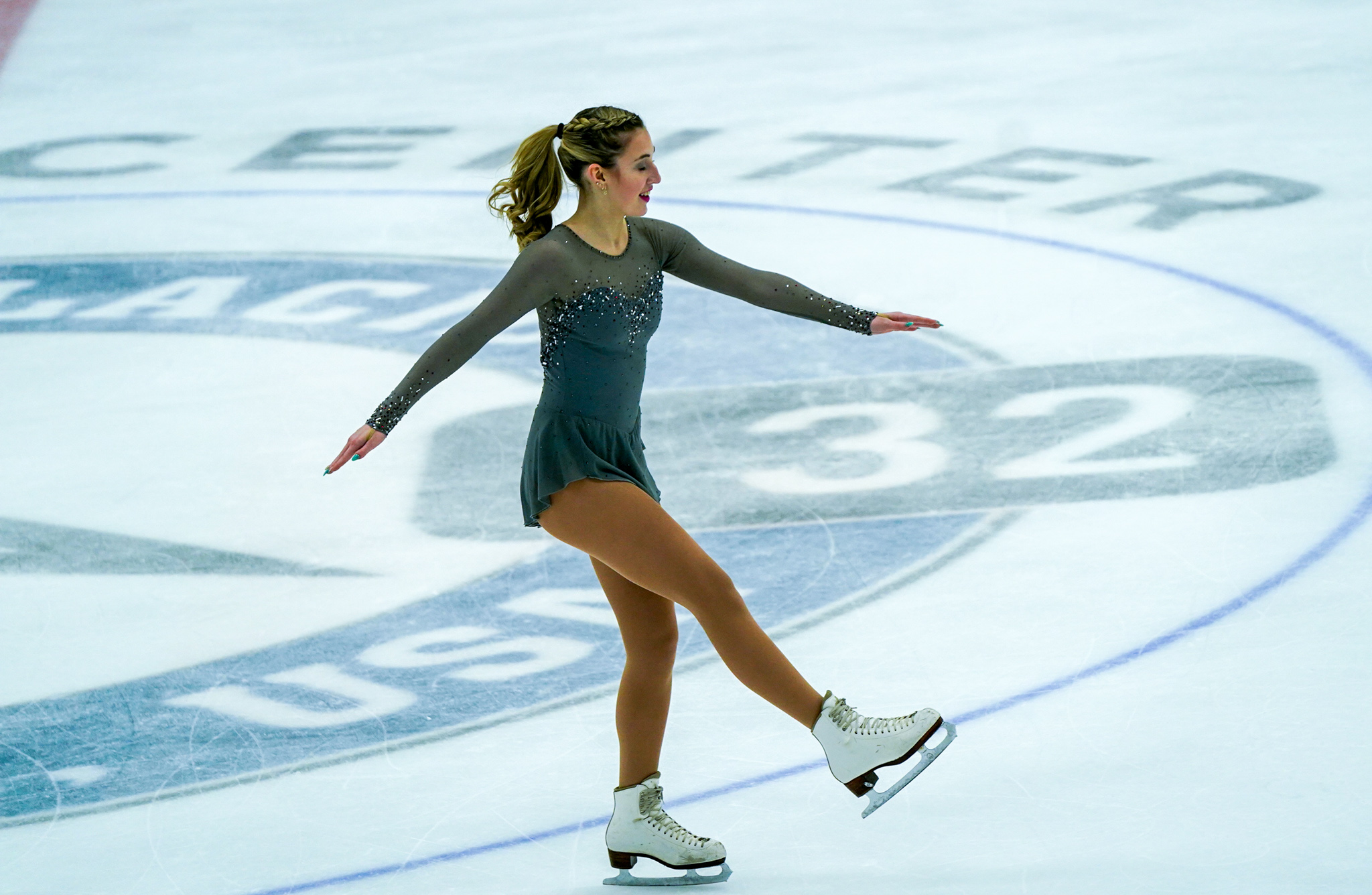 Coral Bales with Skaneateles Figure Skating Club figure skates (Skaneateles,NY) at the Olympic Center ice rink during the Empire State Winter Games in Lake Placid, NY on Friday, February 4, 2022. (Photo by Emma Vallelunga/Newhouse School)