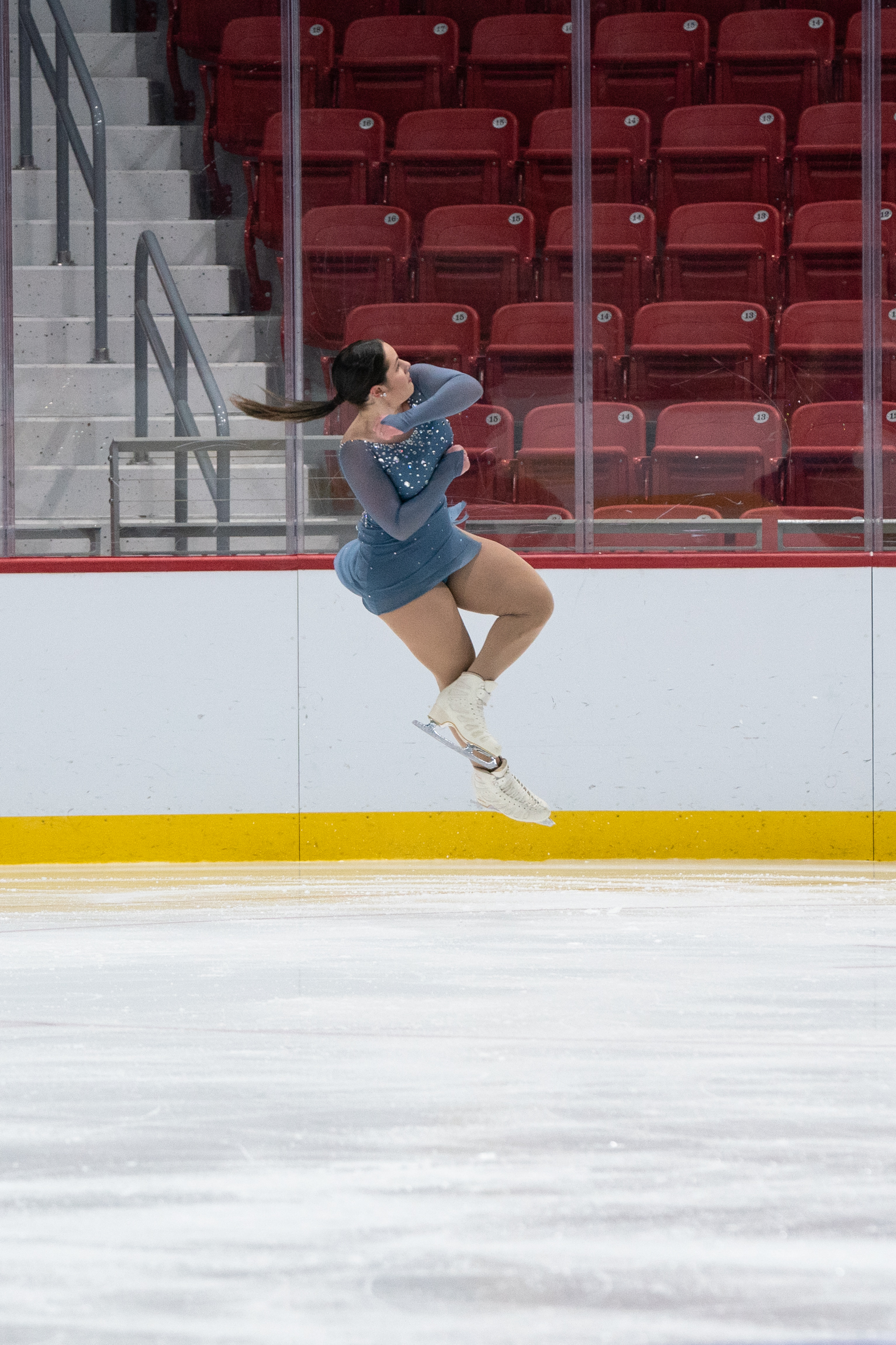Juliana Martilotto of the SC of New York mid jump during her skate in the Senior Ladies Excel for the Empire State Winter Games in Lake Placid, NY on Saturday, February 5, 2022. (Photo by Andrés Trejo/Syracuse University)