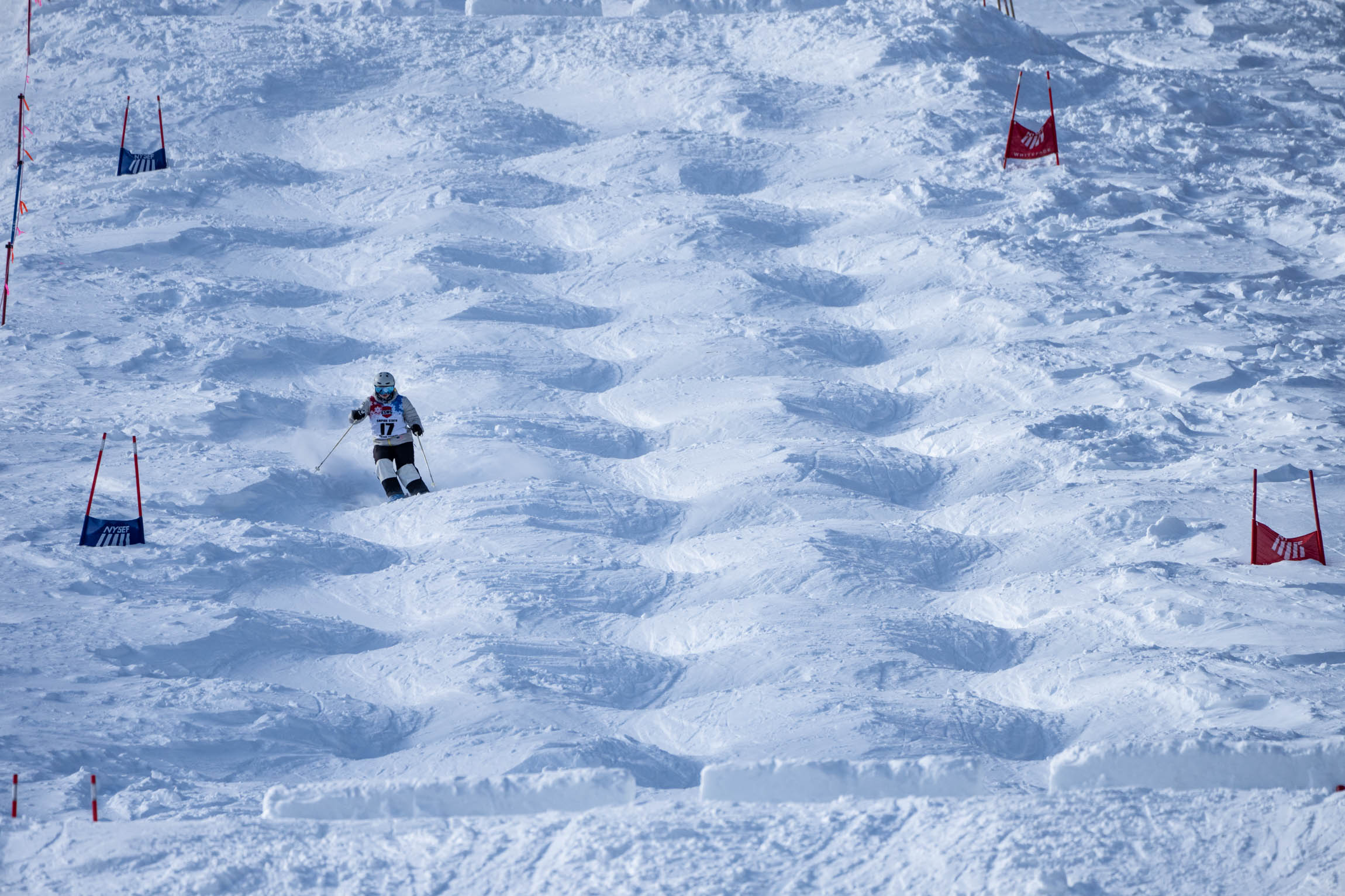 Mackenzie Kula a mogul ski racer from Bristol Mountain races at the Empire State Winter Games in Lake Placid, NY on Sunday, February 6, 2022. (Photo by Lenny Christopher/Newhouse School)