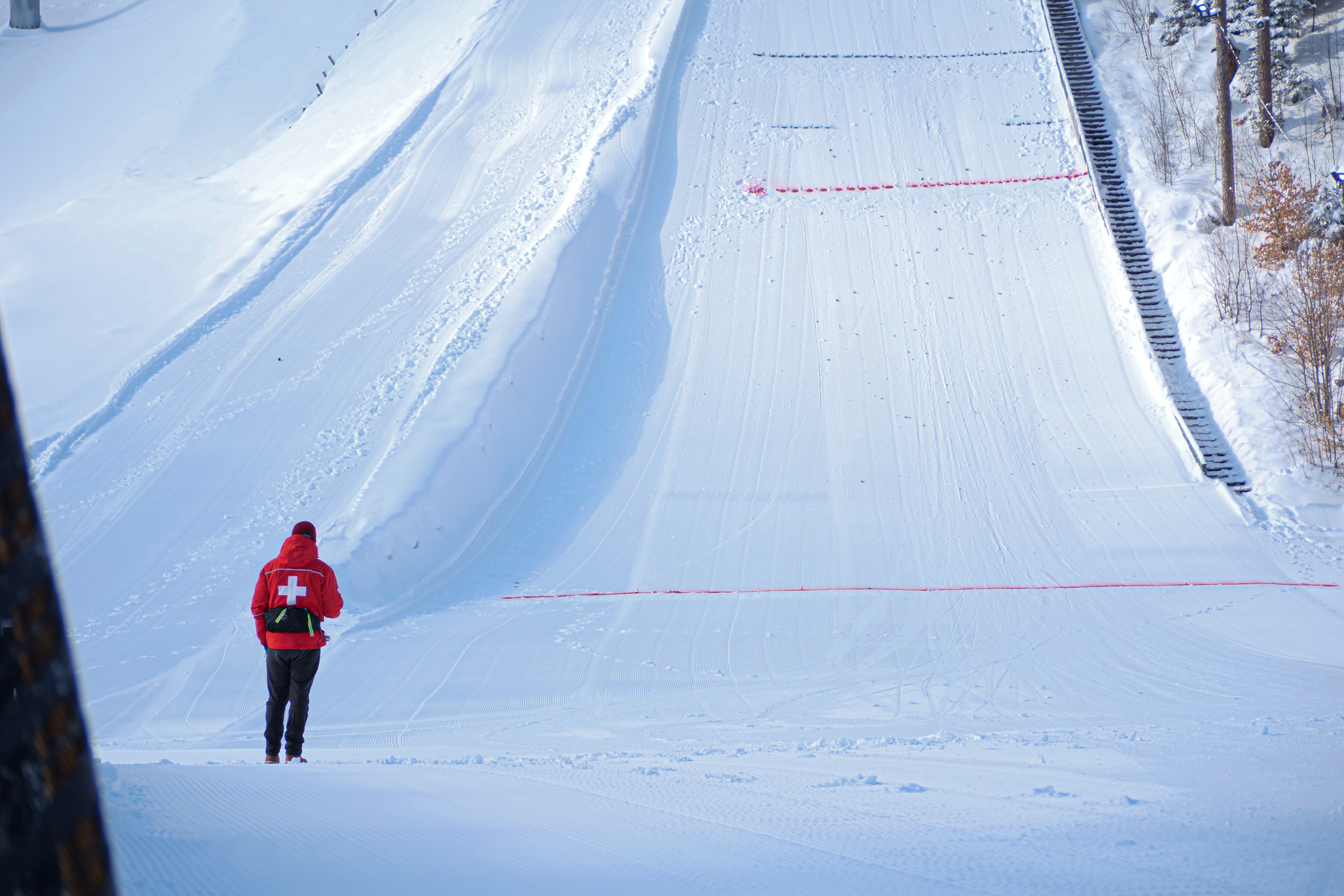 Ski Patrol supervising the K48 ski jump competition at the Empire State Winter Games on February 5th, 2022. (Photo by Cole Strong/Newhouse School)