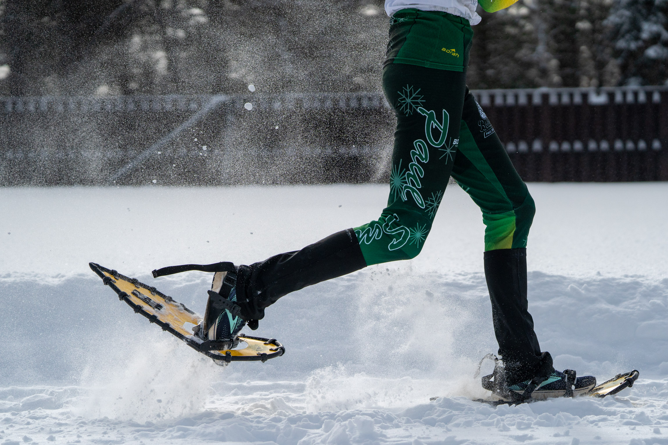 A Paul Smith's College student competes in the snowshoe competition at Paul Smith's College on Saturday, Feb. 5, 2022, during the Empire State Winter Games.