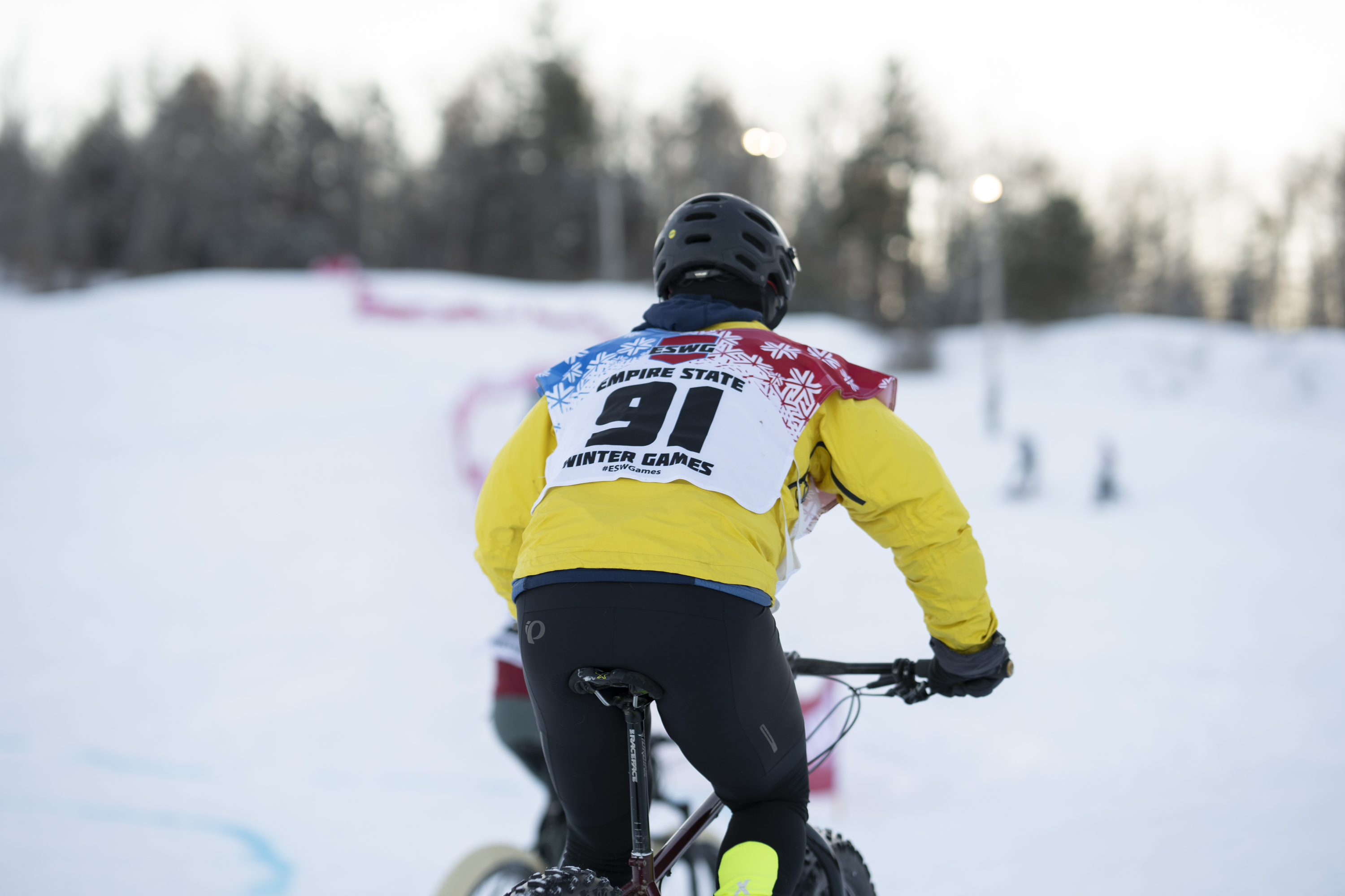 Jacob Partin of Castleton on Hudson pedals through the course during the Empire State Winter Games Cross-Country Biking 5K race at Mt. Pisgah on Saturday, February 5, 2022. (Photo by Kayla Breen/Newhouse School)
