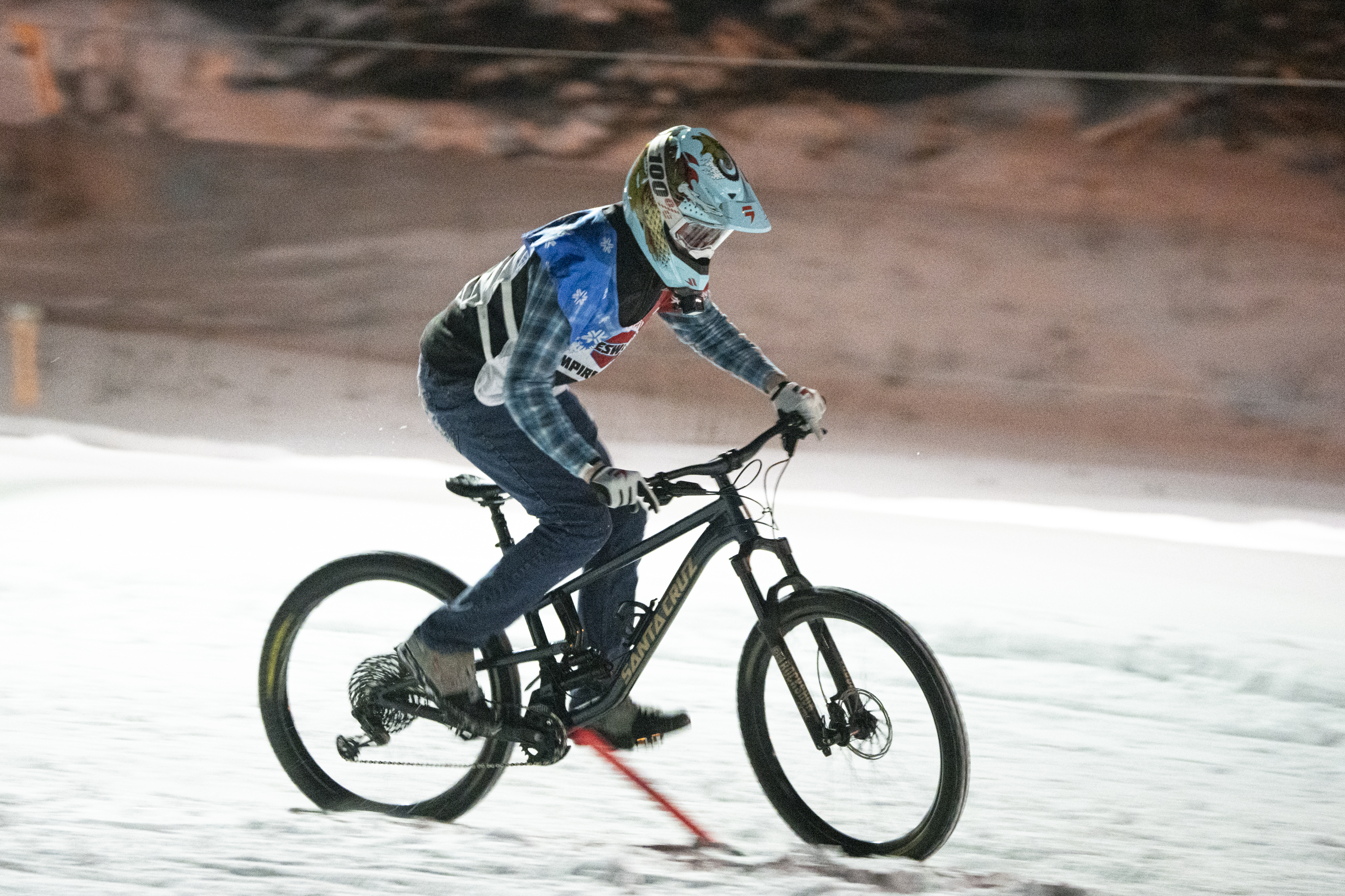 Grant Eckardt of Saranac Lake, N.Y.,competes in the dual slalom biking event at the Empire State Winter Games on Mt. Pisgah Saturday, February 5, 2022. Photo by Kayla Breen/Newhouse School.