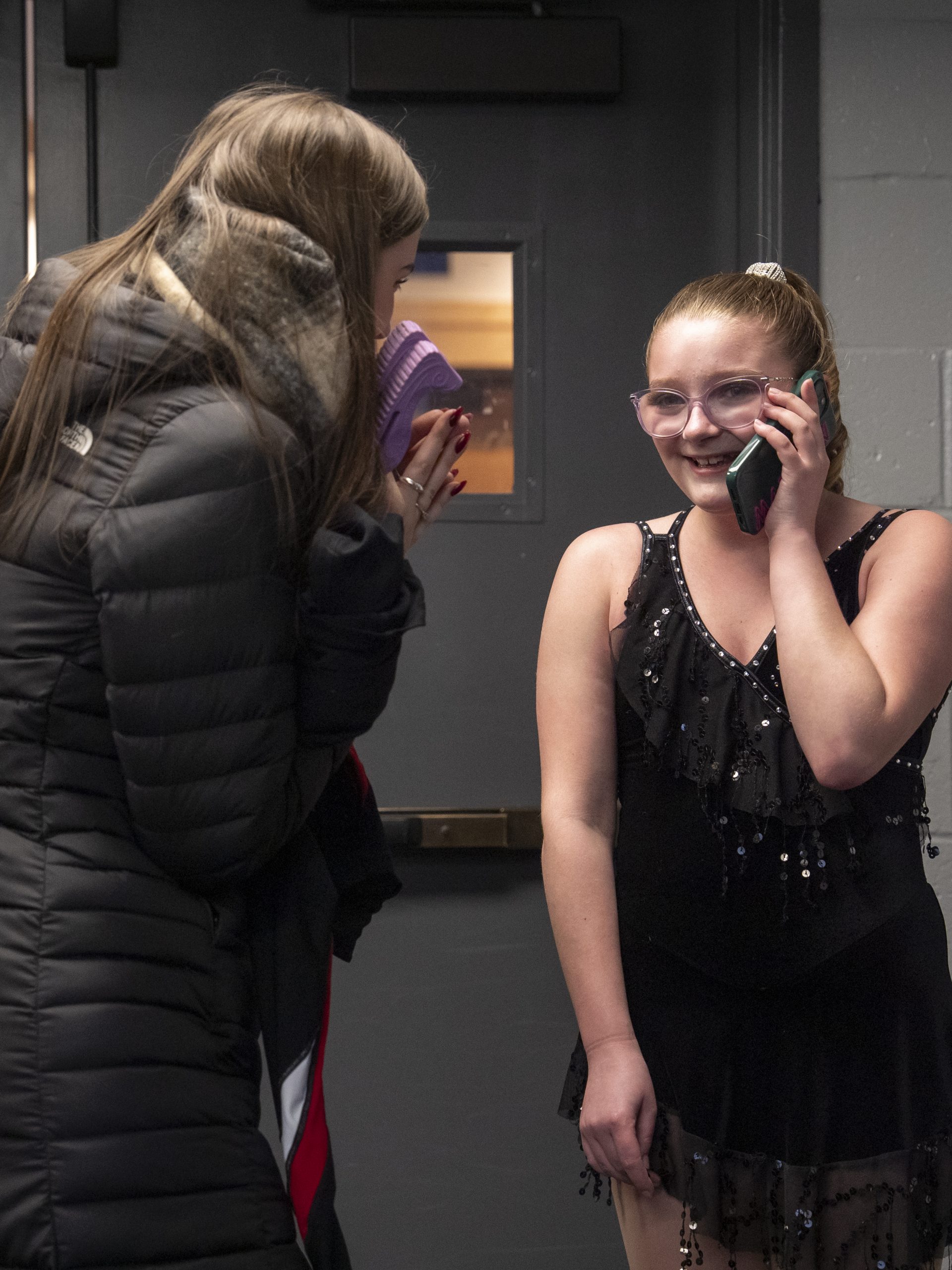 A figure skater and her mom at the Empire State Winter Games in Lake Placid, New York, on Friday, January 31, 2025. (Photo by Maurice Holtzman/Newhouse School)