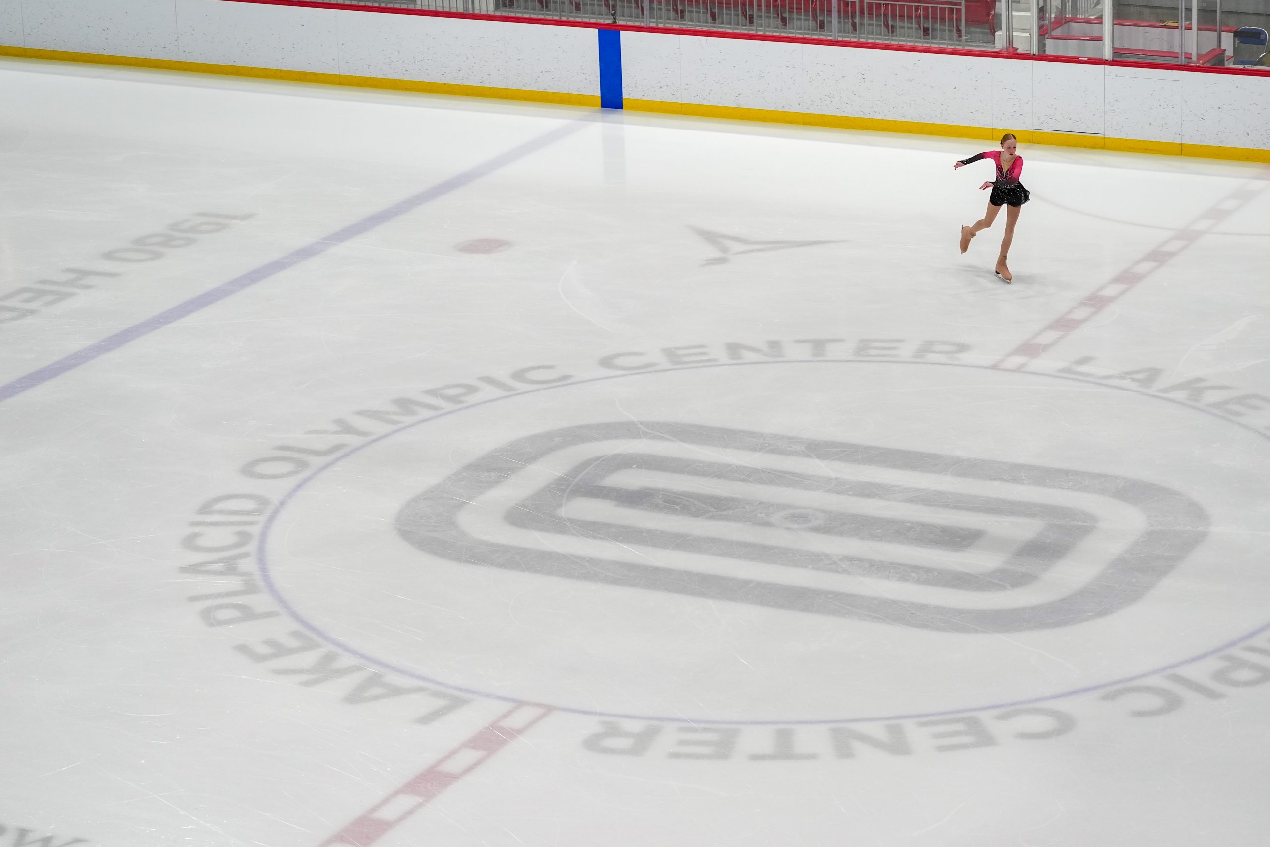 Figure Skating athlete competes in the 1980 Rink at the Olympic Center, in Lake Placid, New York, on Friday, January 31, 2025. (Photo by Jess Van/Newhouse School)