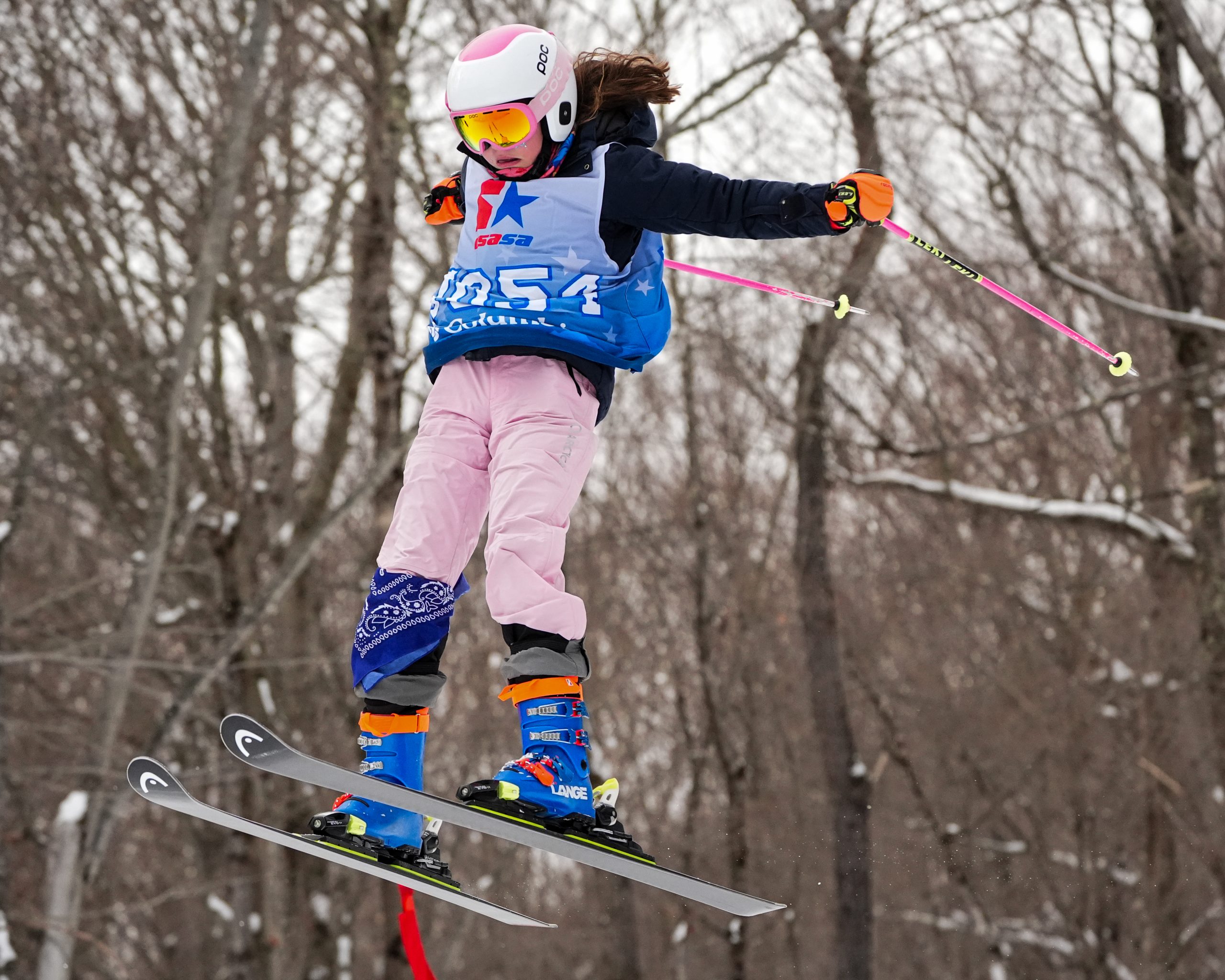 A skier participates in ski cross during the Empire State Winter Games at Whiteface Mountain in Wilmington, New York, on Saturday, February 1, 2025. (Photo by Quinn Carletta/Newhouse School)