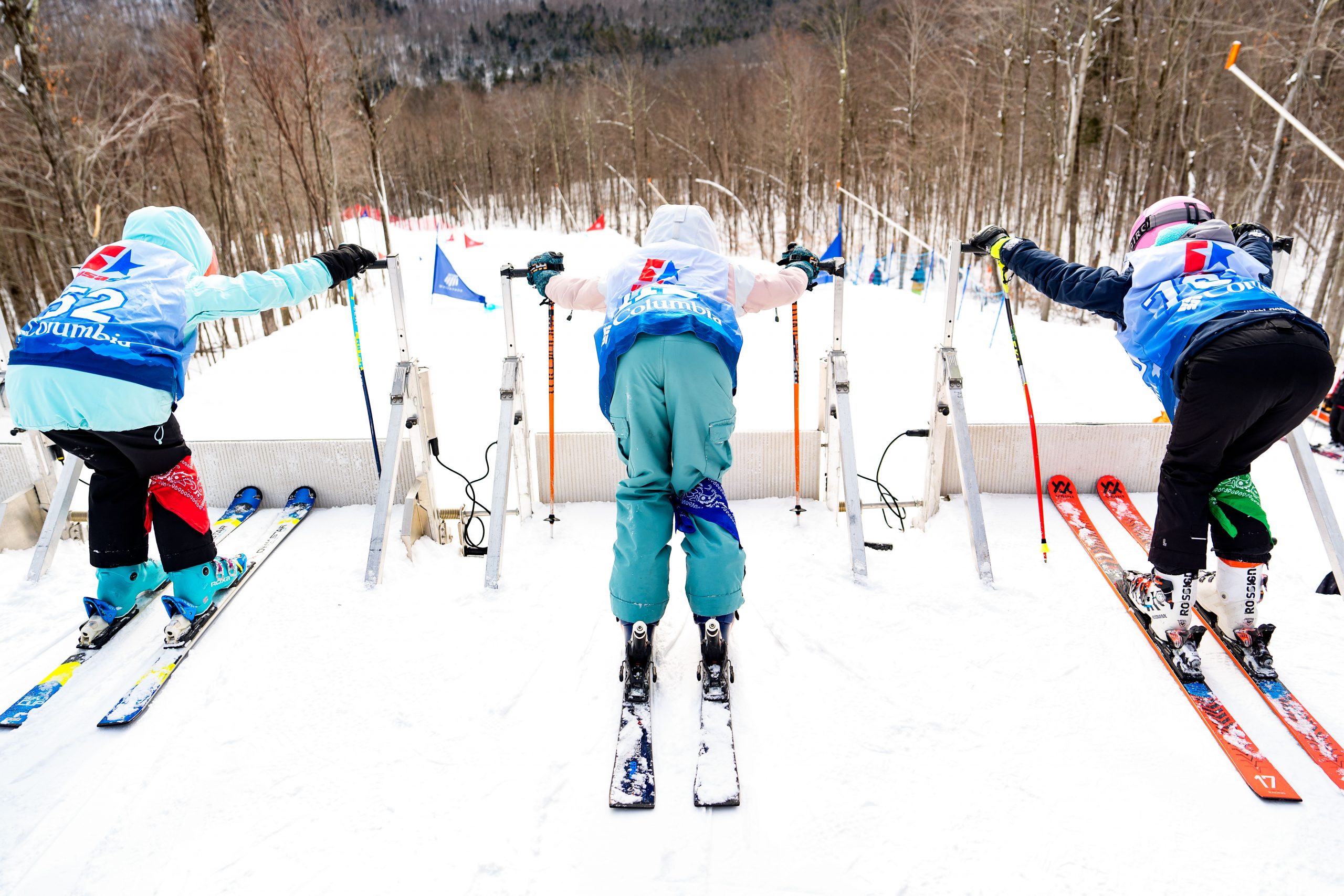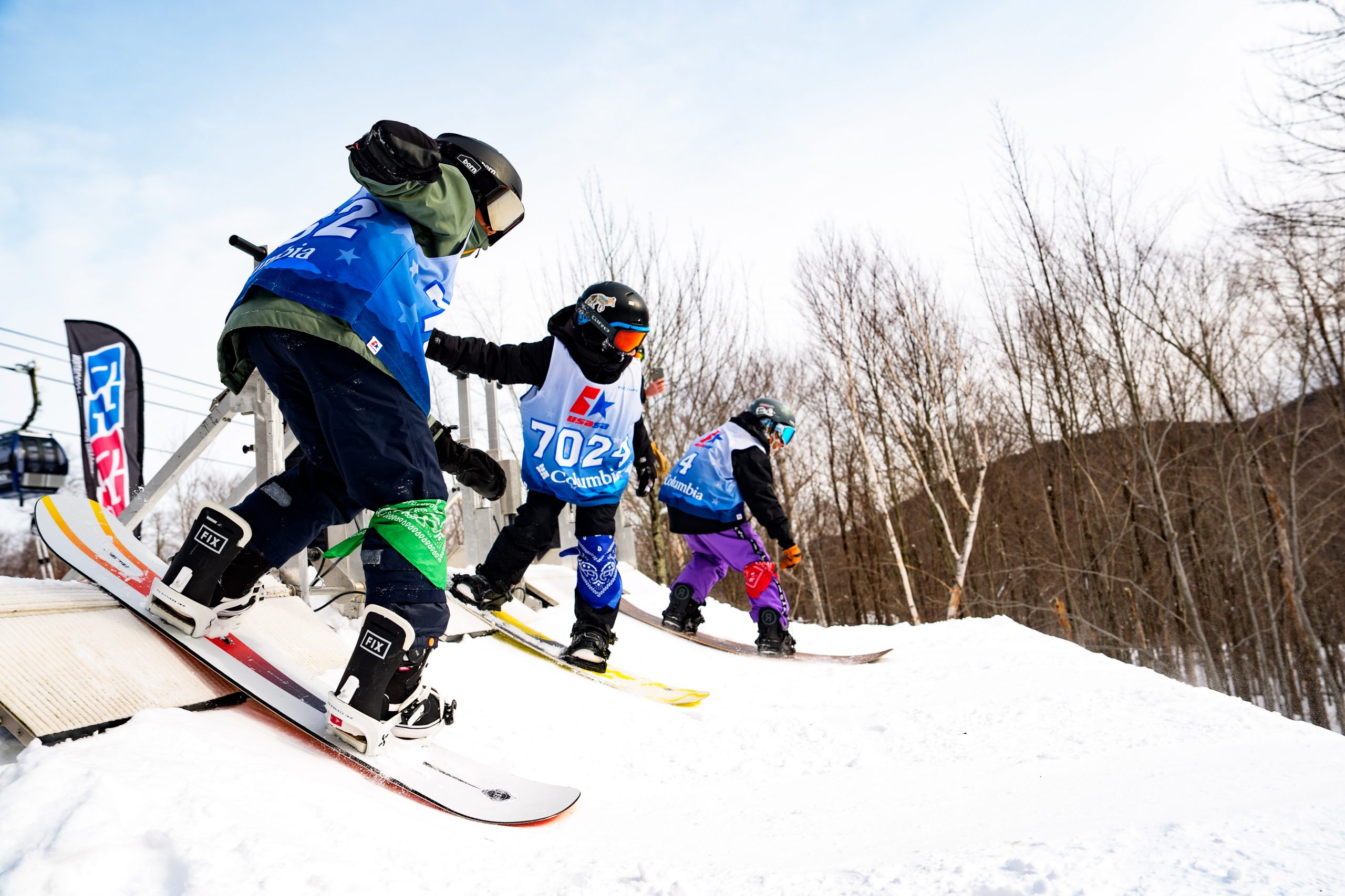 Skiiers prepare to participate in Ski Cross during the Empire State Winter Games at Olympic Center in Lake Placid, New York, on Saturday, February 2, 2025. (Photo by Liam Kennedy/Newhouse School)