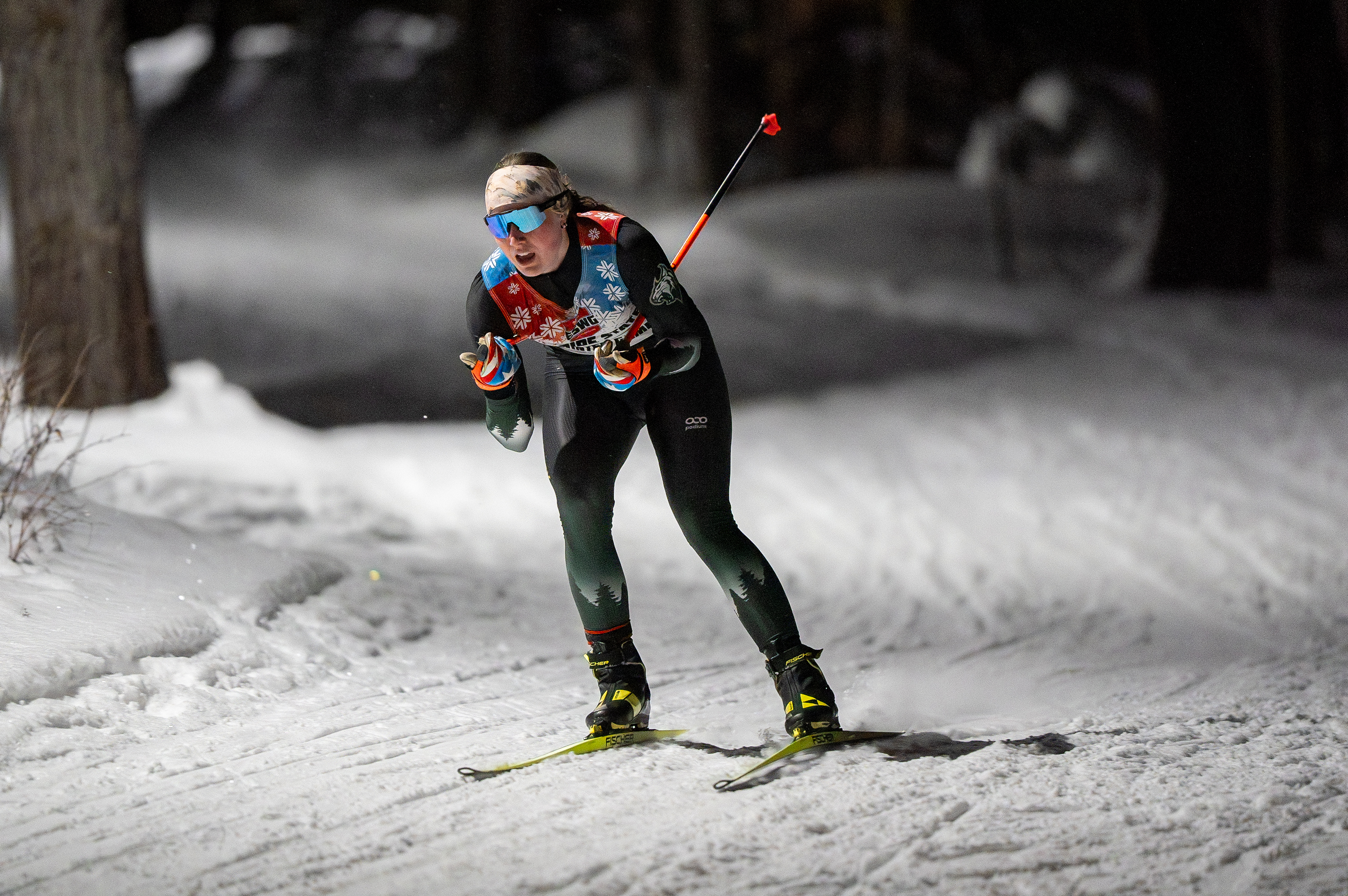 A player at Dewey Mountain Recreational Center in Saranac Lake, New York, during the 2026 USA Winter Triathlon Championship. (Photo by Sky Zhuang/The Newhouse School)