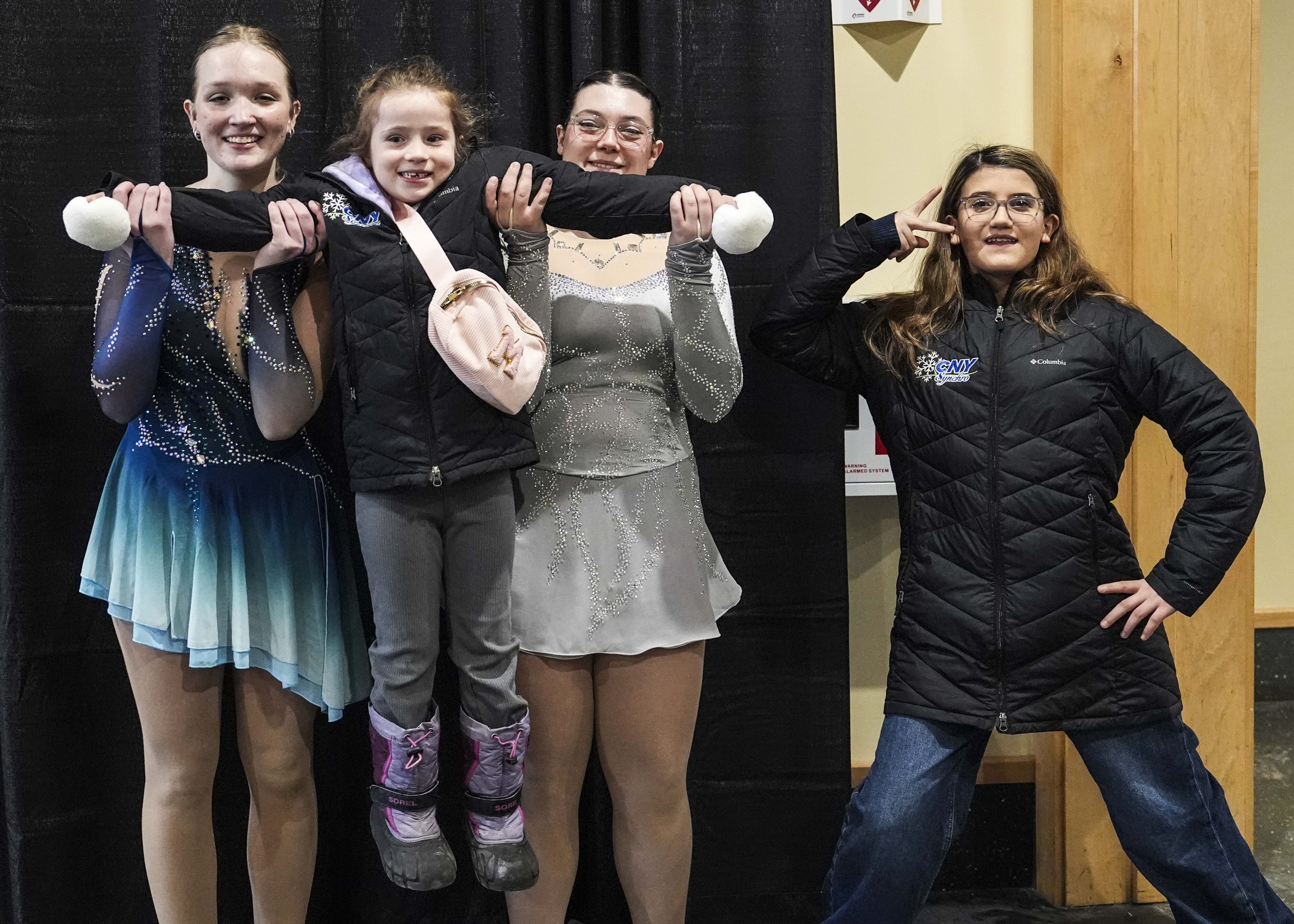 February 6, 2026New York ice skaters pose for a photo during the 2026 Empire State Winter Games Ice Skating Competitions in the 1980 Rink at the Olympic Center in Lake Placid, New York, on Feb. 6, 2026. (Alexa Hernandez/The Newhouse School)