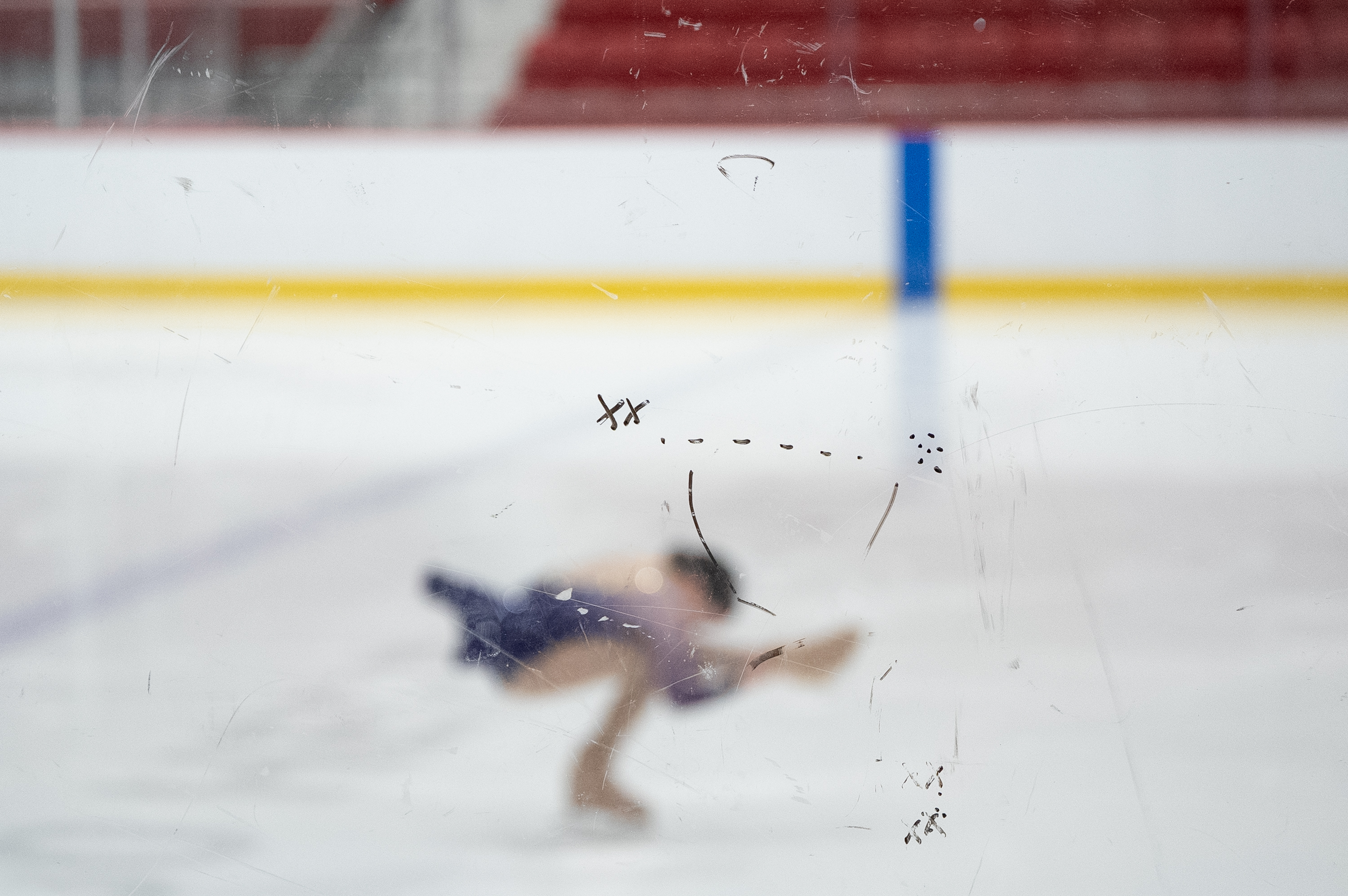 February 6, 2026Caroline Canary from the Hudson-Mohawk Figure Skating Club turns during her routine on the 1980 Rink at the Empire State Winter Games in Lake Placid, New York. February 6, 2026. (Reed Granger/The Newhouse School)