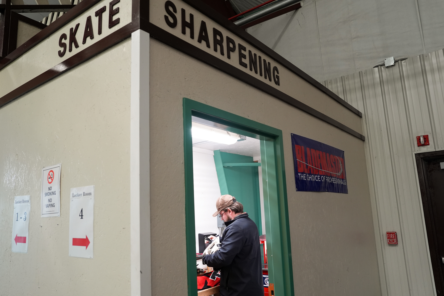 February 8, 2026Ice hockey skates get sharpened at the Tupper Lake Civic Center at the Empire State Winter Games on Feb 7, 2026.