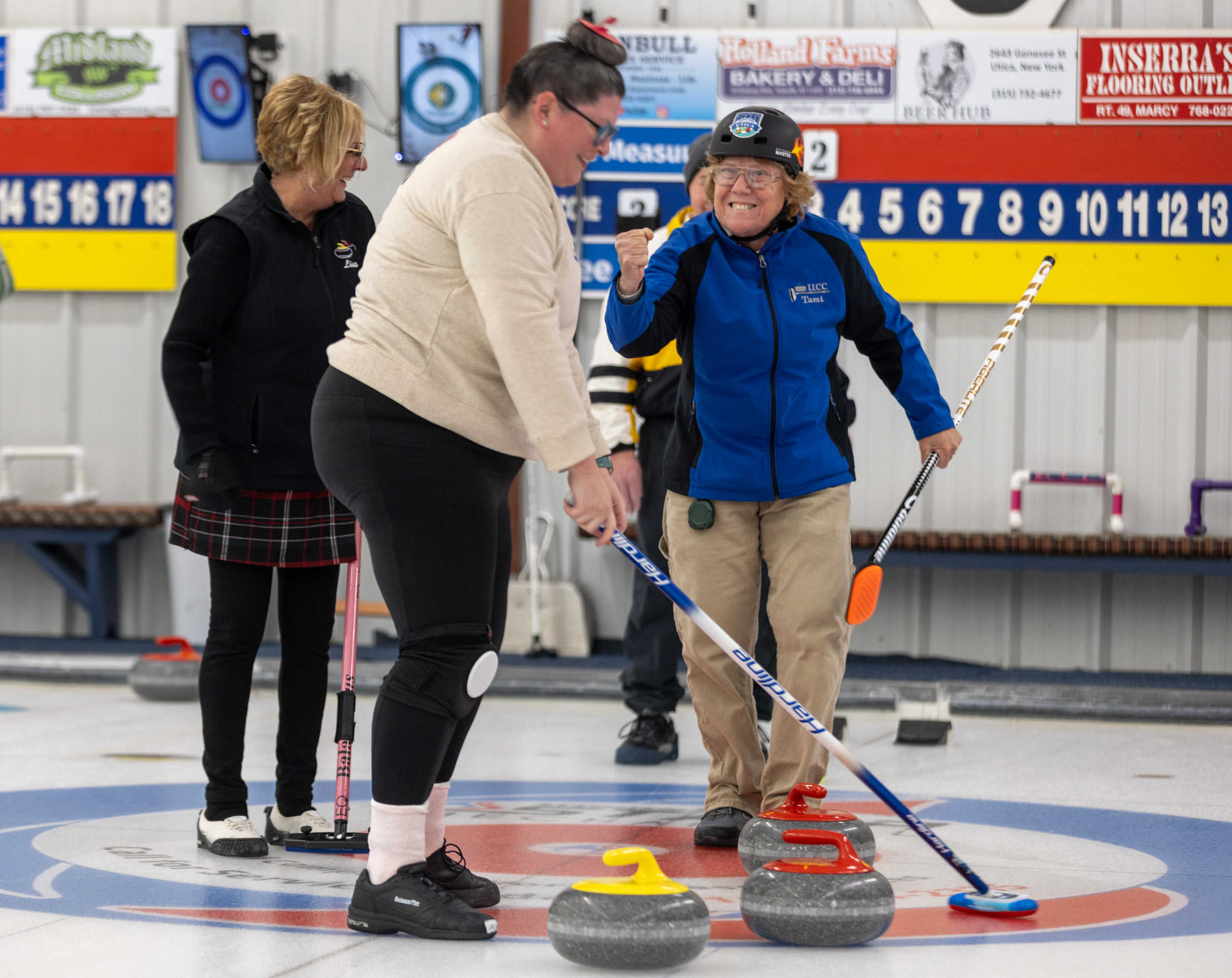 Teammates from The Measure cheering each other on at the 2026 Empire State Winter Games Curling finals held in the Utica Curling Club on Sunday, February 1st.