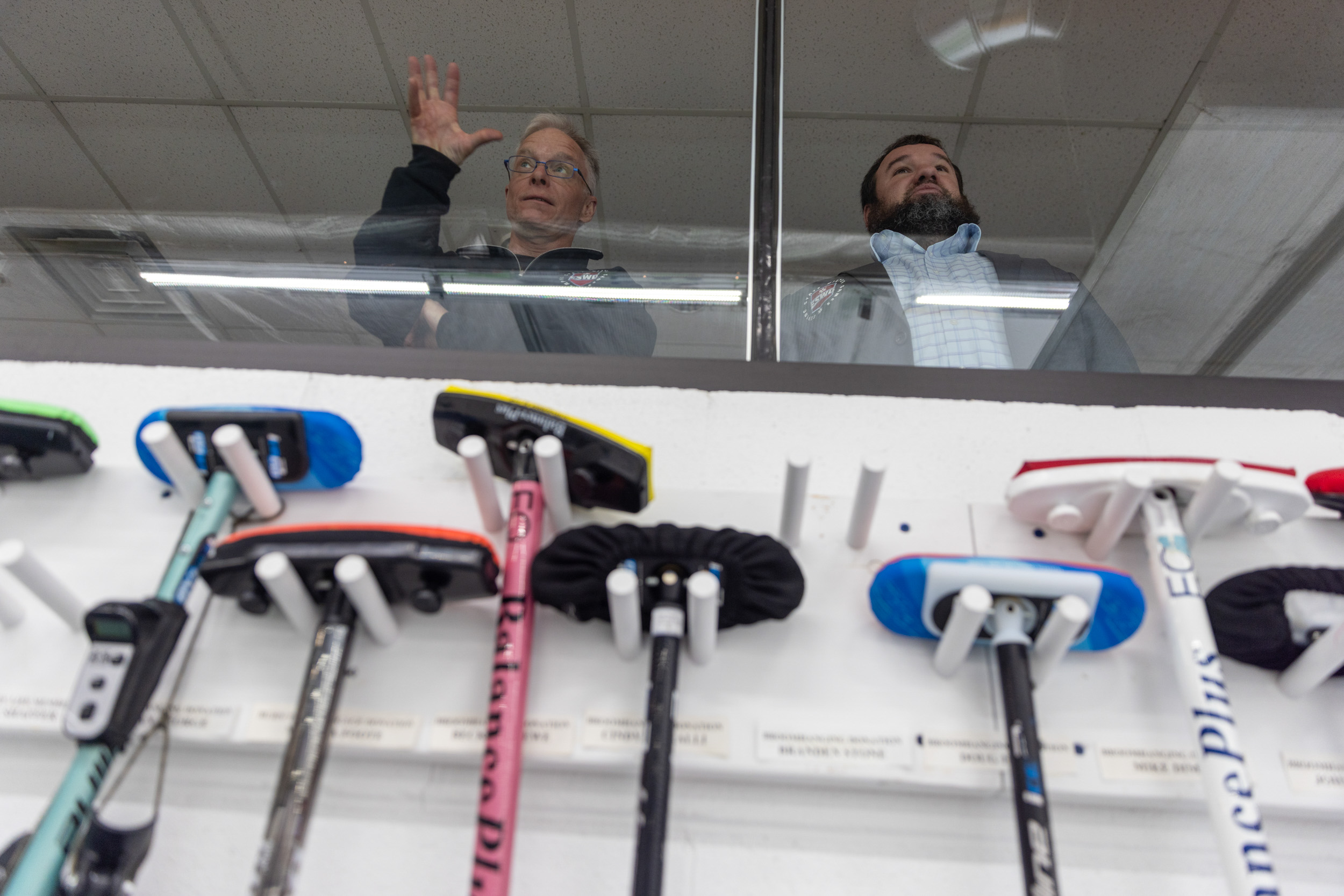 Adirondack Sports Council Director of Communications Jon Lundin (left) and TKTK observing the ESWG Curling finals at the Utica Curling Club on Sunday, February 1st, 2026.