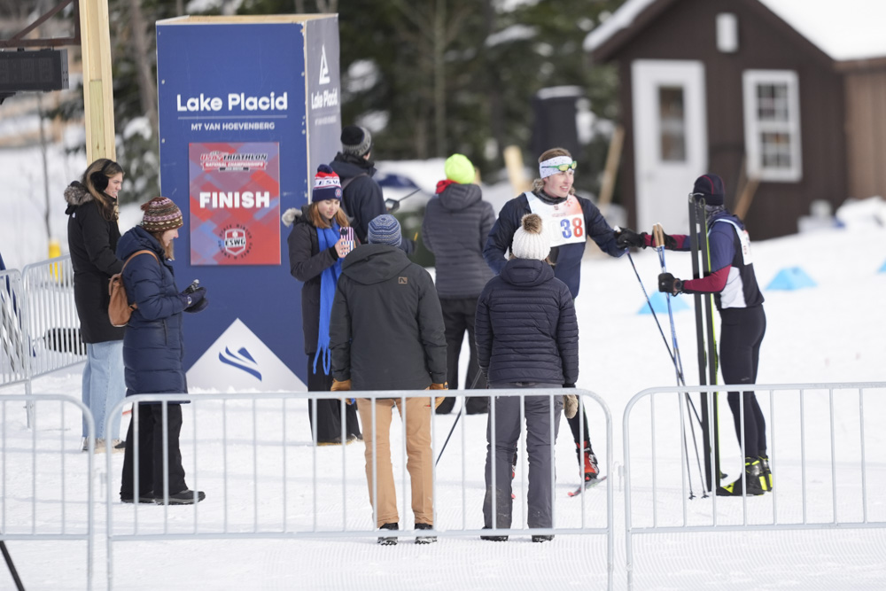February 6, 2026Thomas Woods, third-place finisher in the triathlon, crosses the finish line at Mount Van Hoevenberg in Lake Placid, New York, during the 2026 USA Winter Triathlon Championship. (Photo by Seth Gitner/The Newhouse School)