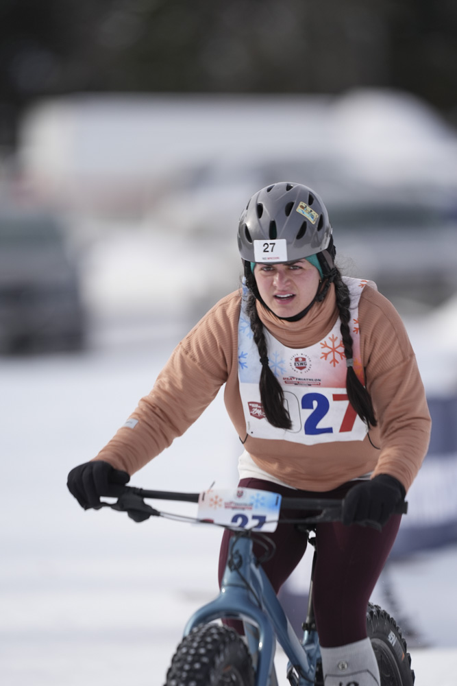 February 6, 2026Farrin Saba gets going on her bike at Mount Van Hoevenberg in Lake Placid, New York, during the 2026 USA Winter Triathlon Championship. (Photo by Seth Gitner/The Newhouse School)
