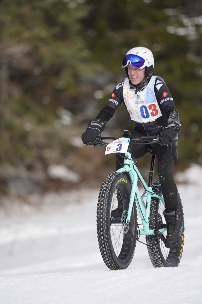 Kenneth Burd bikes at Mount Van Hoevenberg in Lake Placid, New York, during the 2026 USA Winter Triathlon Championship. (Photo by Seth Gitner/The Newhouse School)