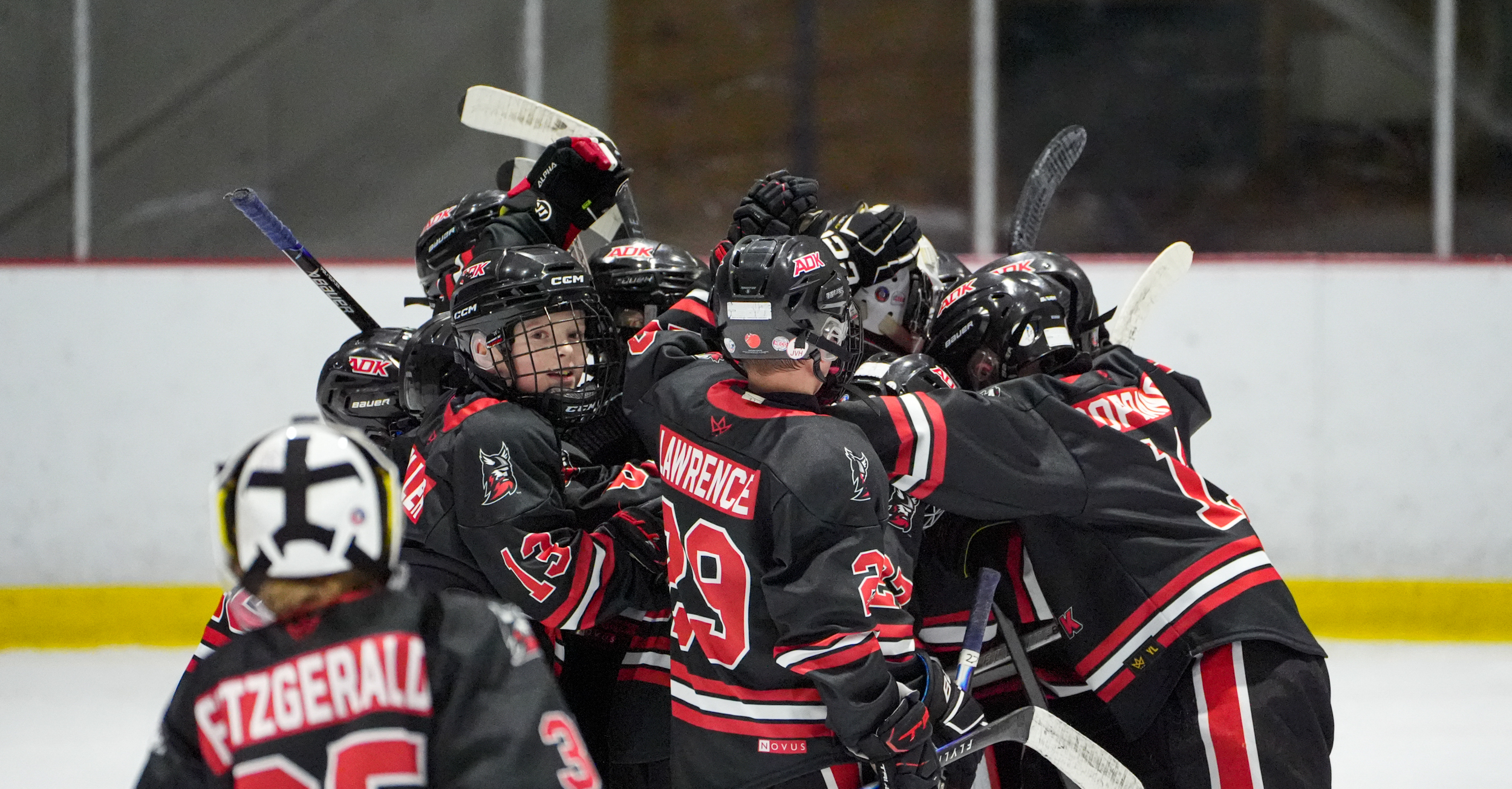 February 7, 2026The Adirondack Thunder celebrate a win against the Plattsburgh Junior Cardinals at the 2026 Empire State Winter Games Opening Ceremony in the USA Rink at the Olympic Complex in Lake Placid, New York, on Feb 6, 2026. (Cassie Roshu/The Newhouse School)