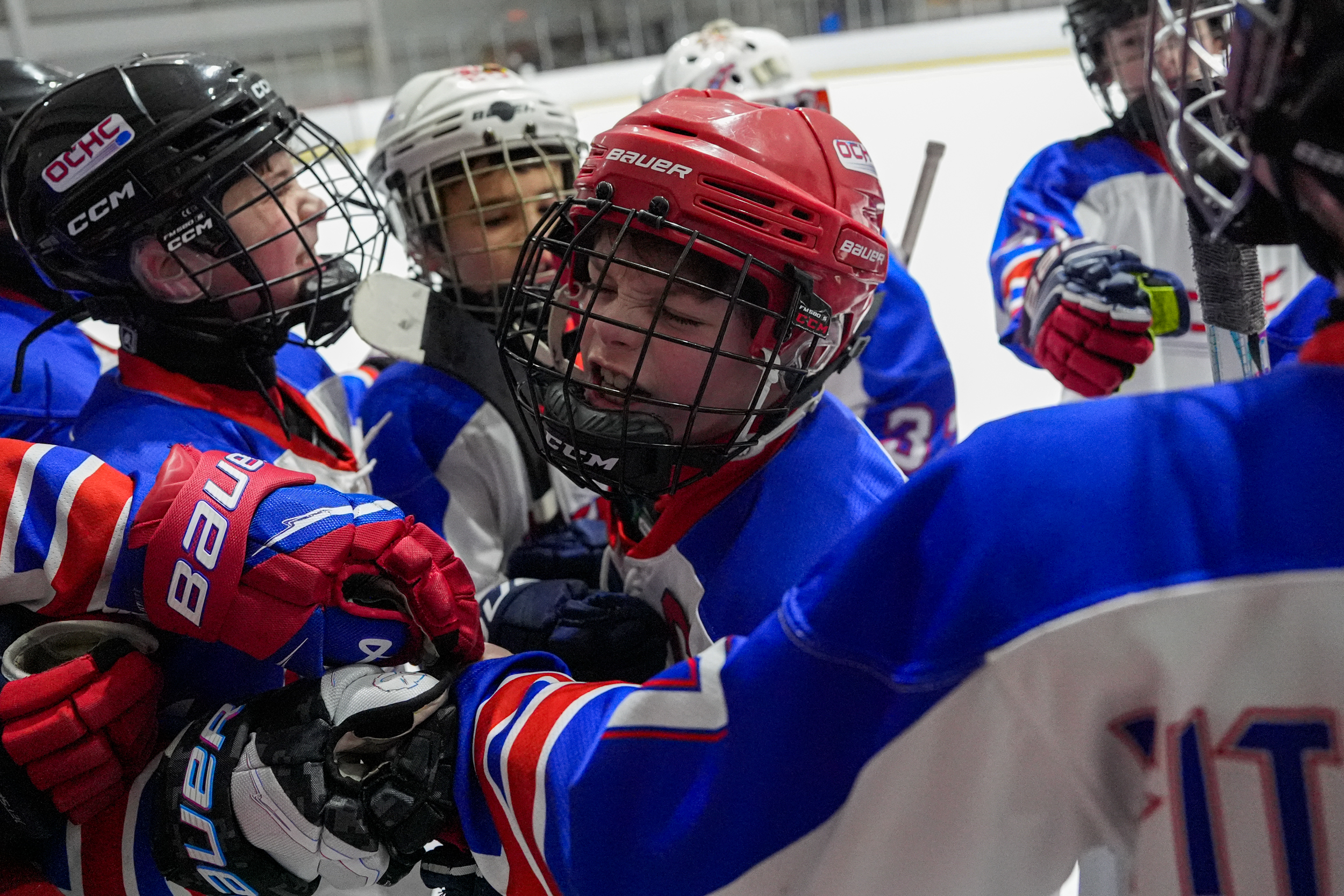 Oneida County Hockey Club Spartans #2 William Zalewski energizing his team at the 2026 Empire State Winter Games Opening Ceremony in the 1980 Rink at the Olympic Complex in Lake Placid, New York, on Feb 5, 2026. (Cassie Roshu/The Newhouse School)