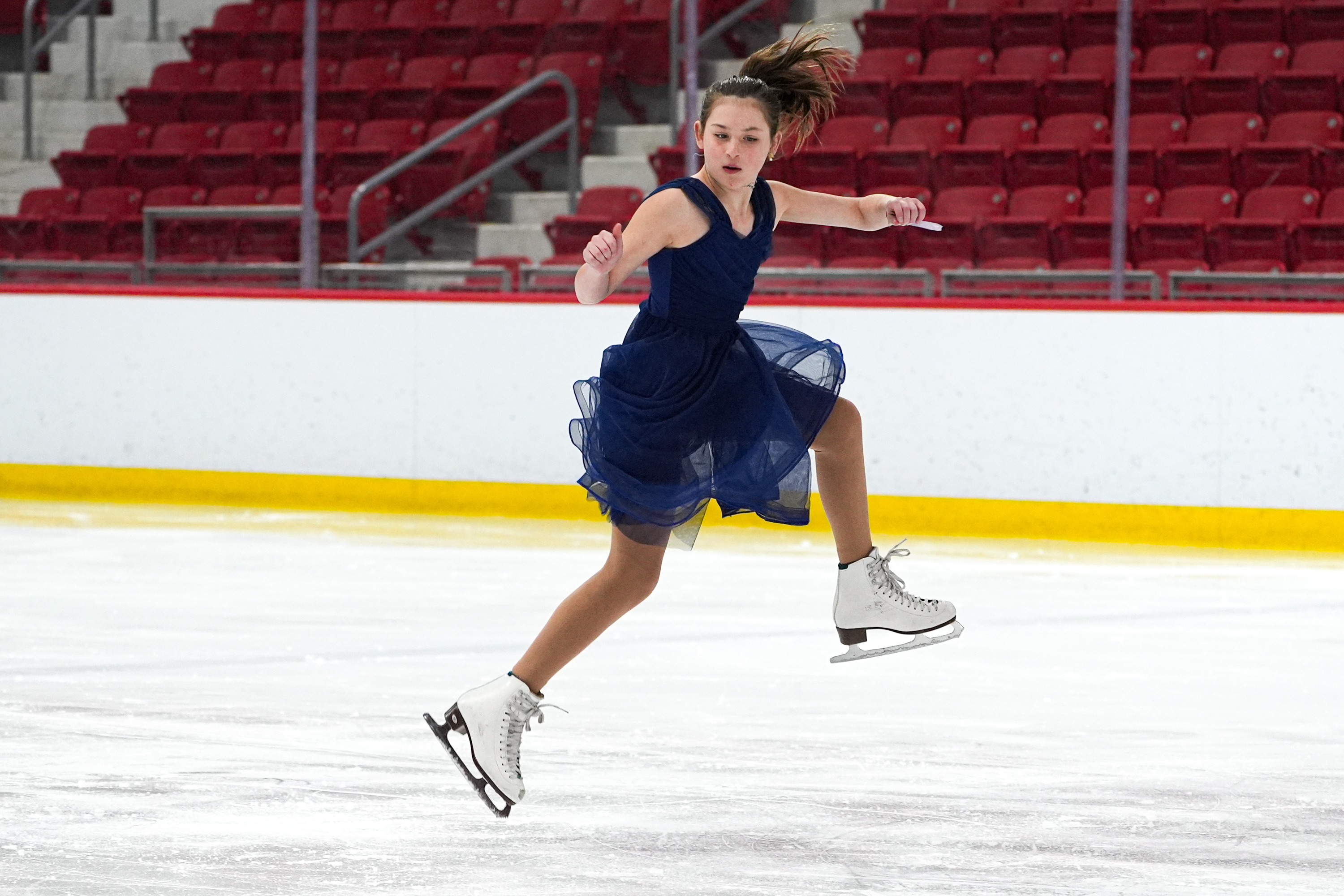 February 7, 2026Figure skater Gabby Hudak makes a backwards jump in her routine at the 2026 Empire State Winter Games in the 1980 Rink at the Olympic Complex in Lake Placid, New York, on Feb. 7, 2026. (Isaac Williams/The Newhouse School)