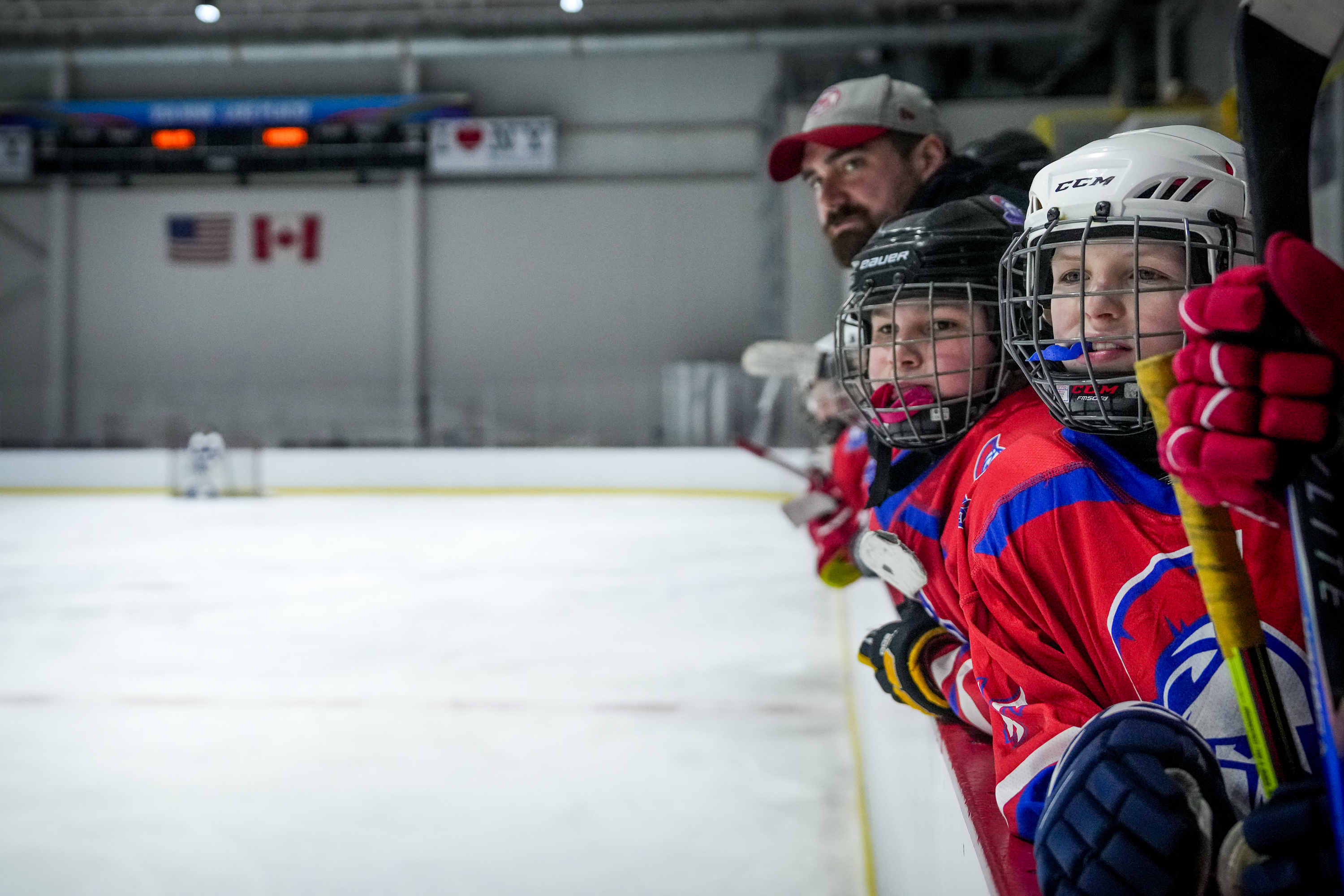 February 7, 2026The 12U Massena Jr. Raiders watch the game from the bench. Scenes from the USA rink on Friday, Feburary 7 in Lake Placid, NY.