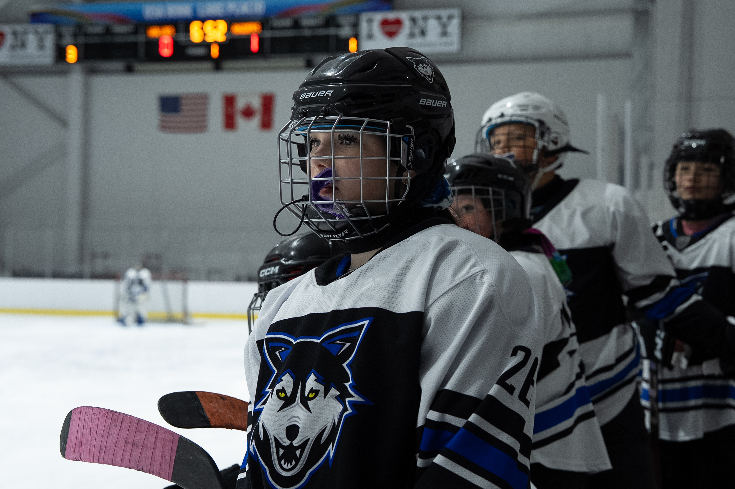 February 7, 2026Leena McCurry, a Watertown Wolves hockey player, watches her 12U team play against the Massena Jr. Raiders in the USA Rink during the Empire State Winter Games. Lake Placid, New York. Feb 7, 2026.