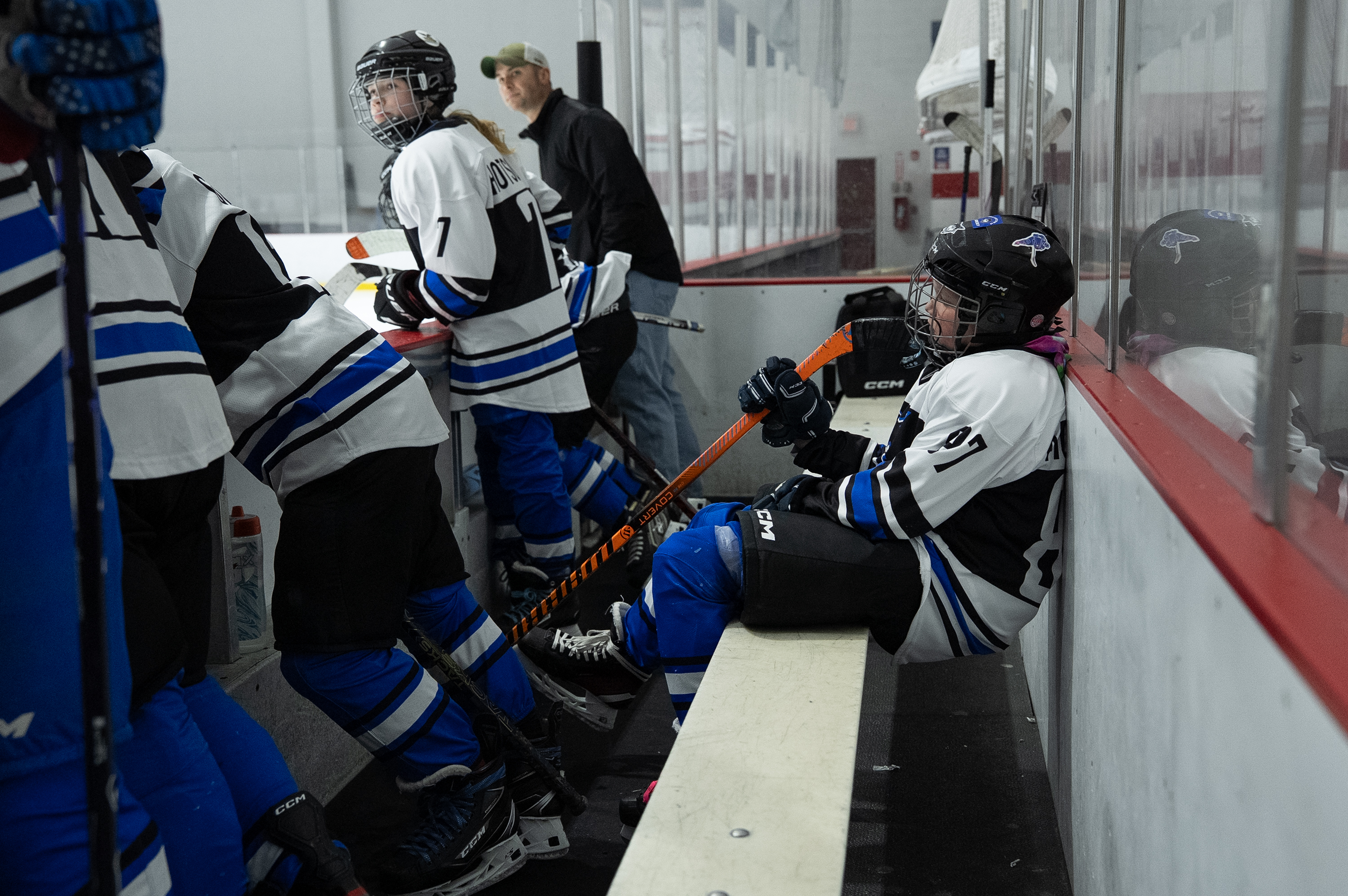 February 7, 2026Watertown Wolves player Everleigh McArdell rests during her 12U game vs the Massena Jr. Raiders at the Empire State Winter Games. Lake Placid, New York. Feb 7, 2026.