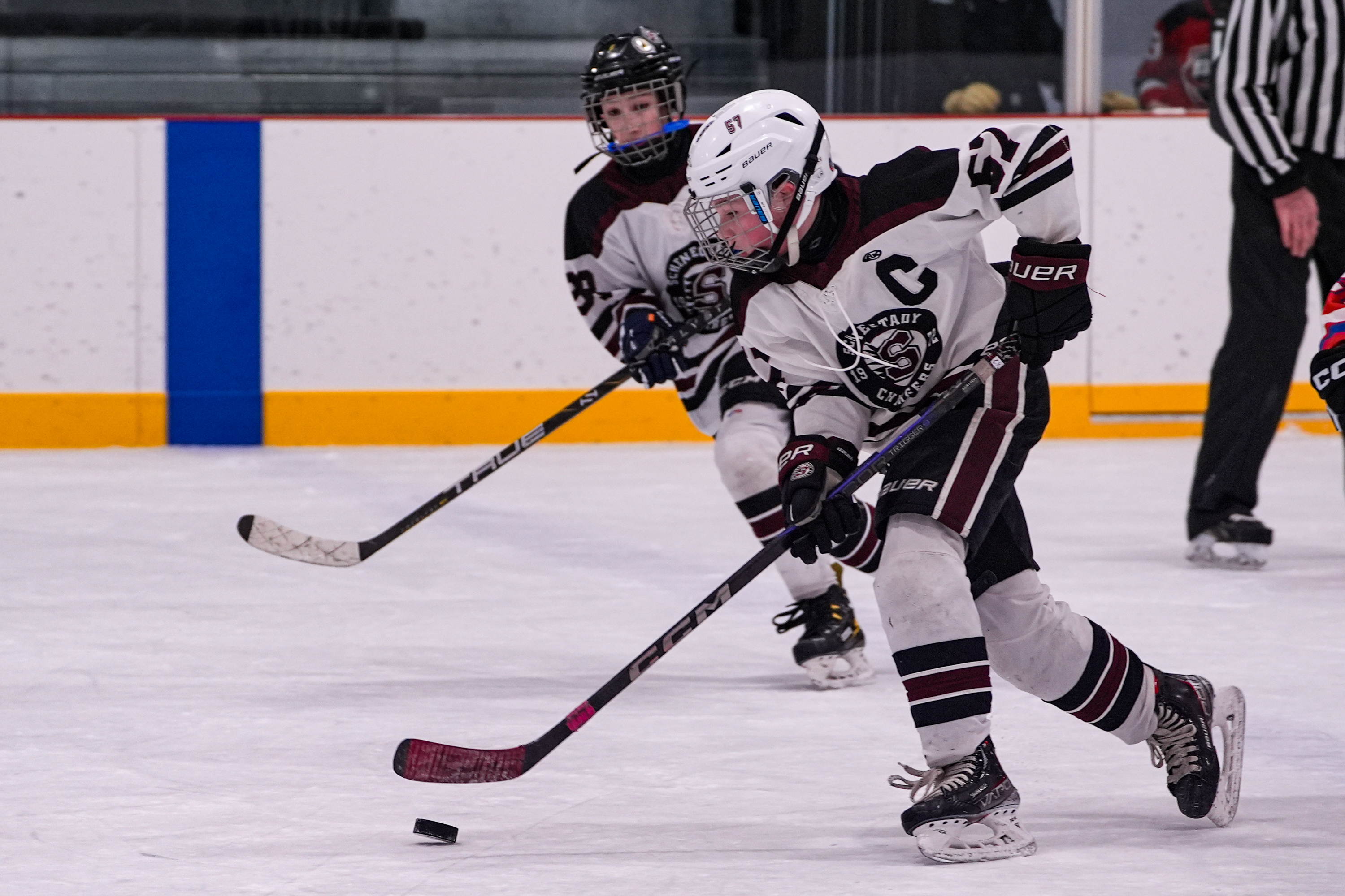 February 9, 2026The Schenectady Chargers carry the puck during their game against the Massena Jr. Raiders at the 2026 Empire State Winter Games at Saranac Lake Civic Center in Saranac Lake, New York, on Feb. 8, 2026. (Rebecca Beckas/The Newhouse School)