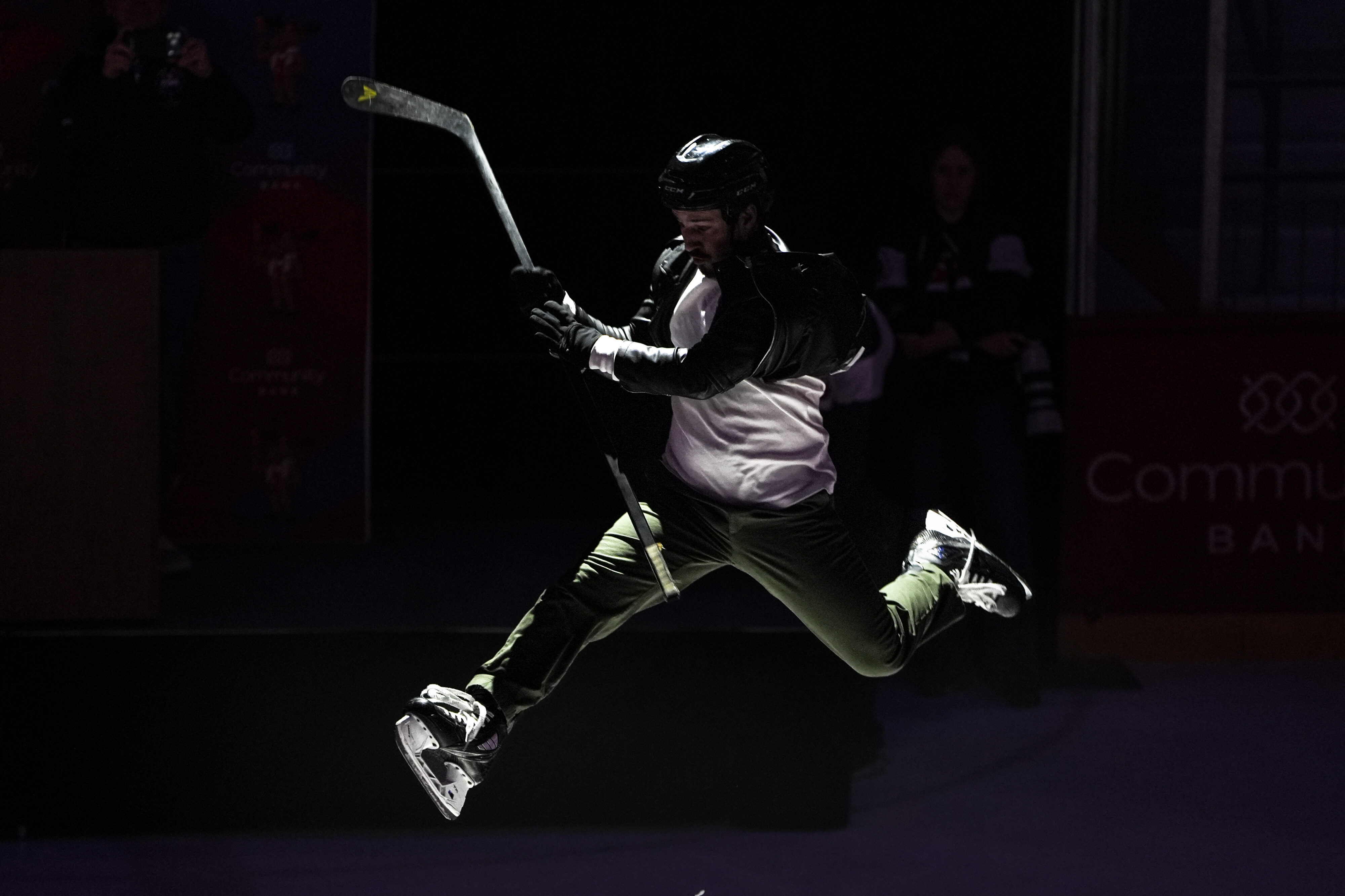 February 6, 2026Members of the Turbo Twins leap in the air during the 2026 Empire State Winter Games Opening Ceremony in the 1980 Rink at the Olympic Complex in Lake Placid, New York, on Feb 5, 2026. (Isaac Williams/The Newhouse School)