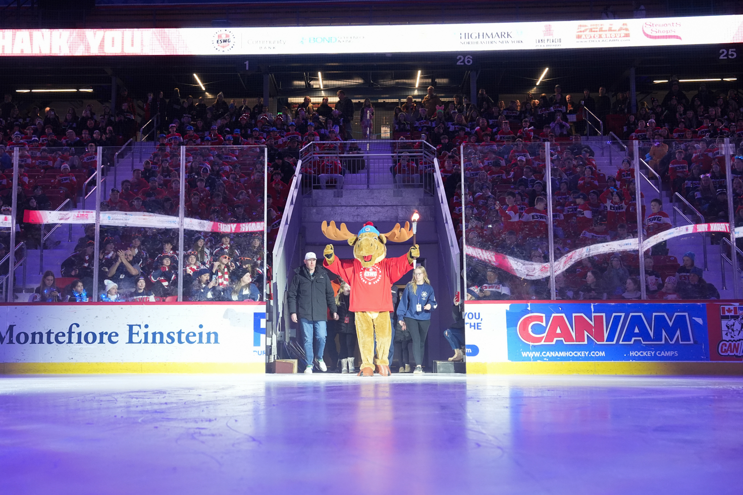 February 6, 2026Adirondack Mac carries the Empire State Winter Games Torch into the Opening Ceremony of the 2026 Empire State Winter Games at the 1980 Rink at the Olympic Complex in Lake Placid, New York, on Feb 5, 2026. (Adeline Taylor/The Newhouse School)