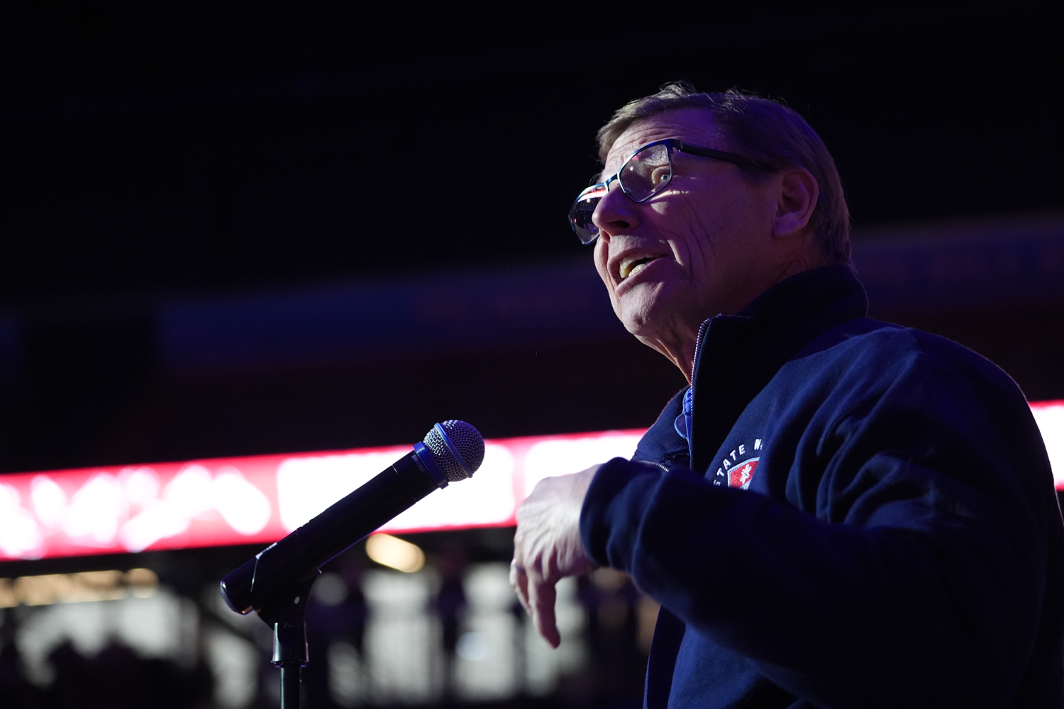 February 6, 2026Tom Messner delivers a speech at the Opening Ceremony of the 2026 Empire State Winter Games at the 1980 Rink at the Olympic Complex in Lake Placid, New York, on Feb 5, 2026. (Adeline Taylor/The Newhouse School)
