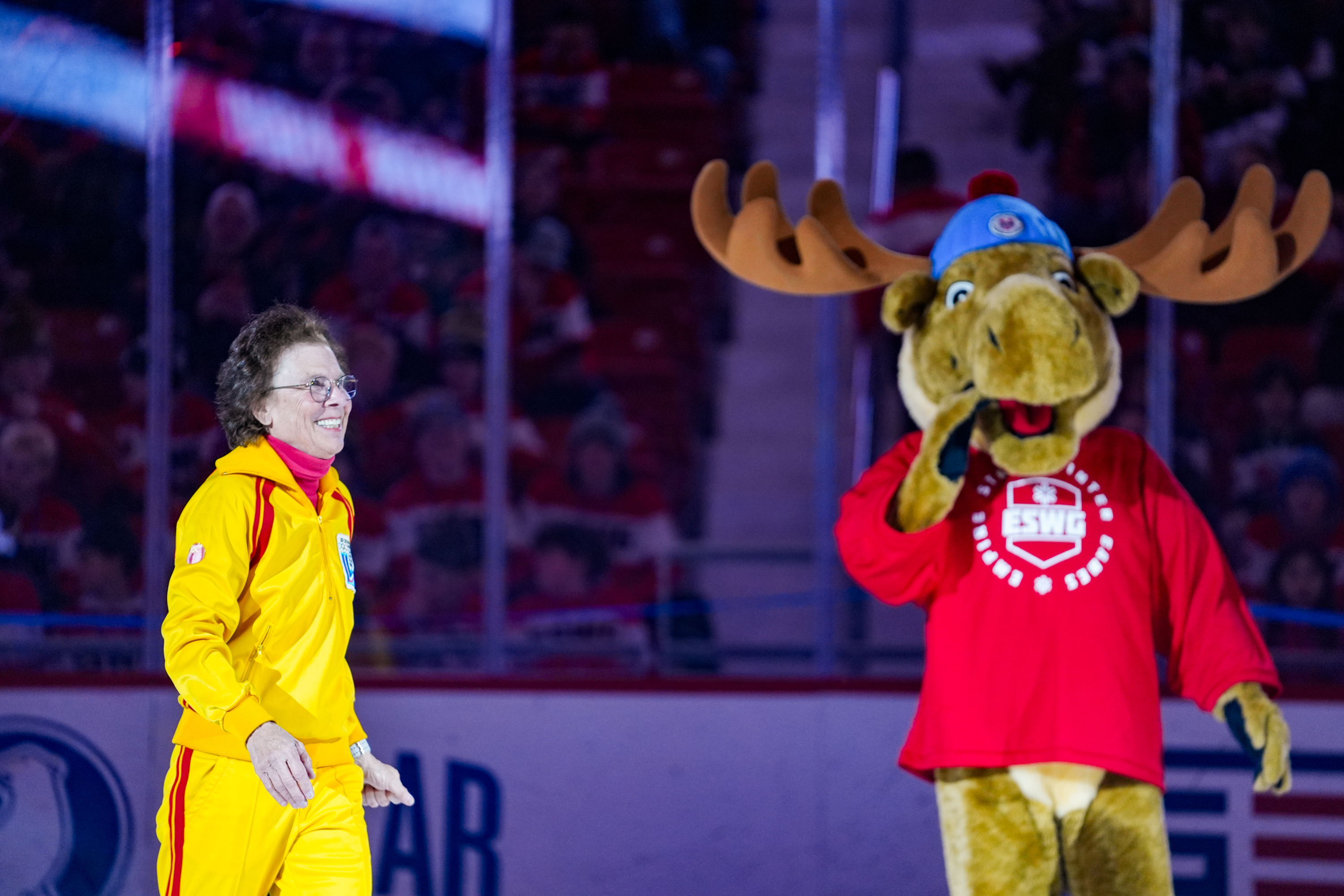 February 6, 2026Suzy Mink enters the 1980 Arena to light the cauldron during the opening ceremony of the Empire State Winter Games on Thursday, February 5, in Lake Placid, New York. (Jack Henry/The Newhouse School)