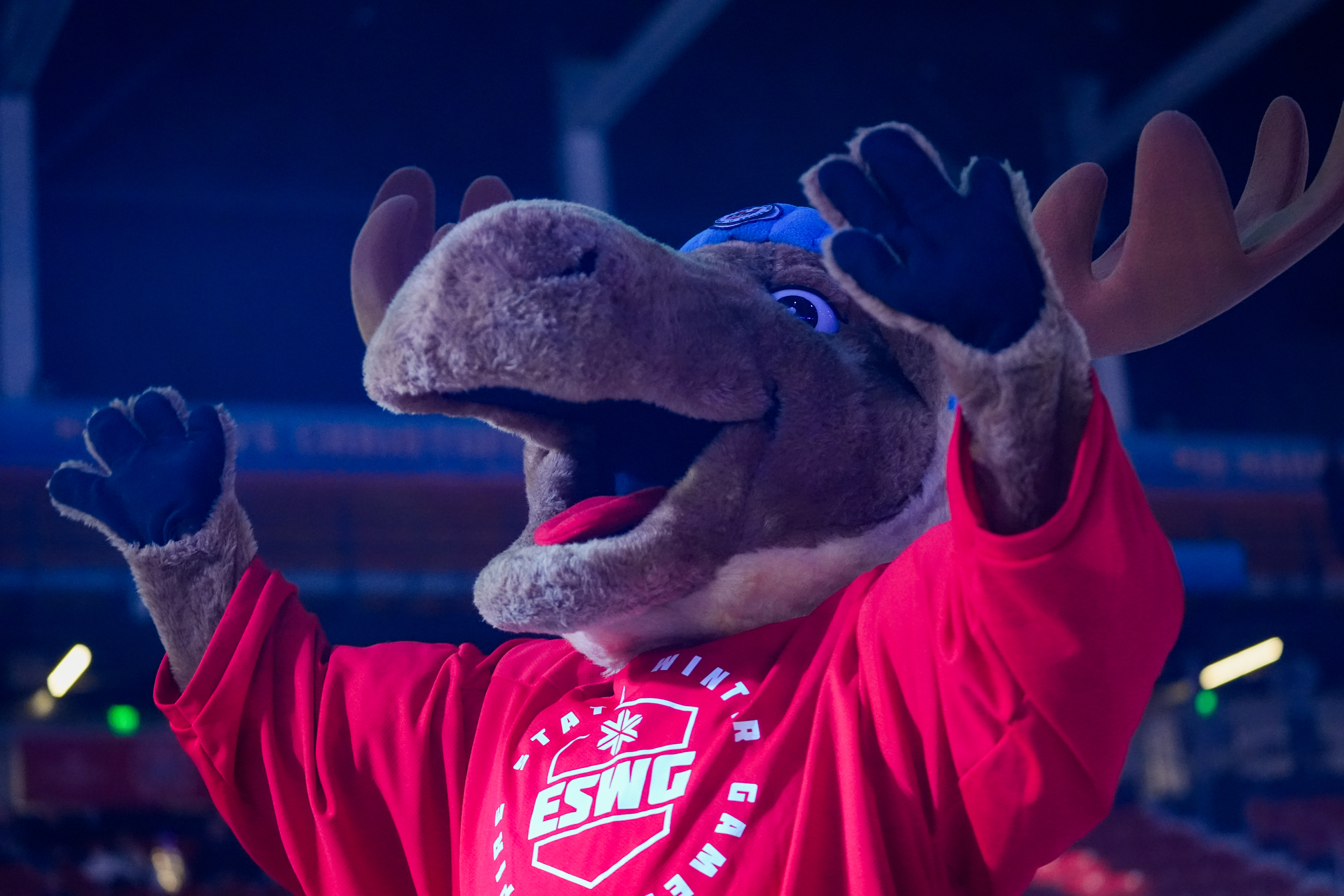 Adirondack Mac hypes up the crowd during the opening ceremony of the Empire State Winter Games at the 1980 Arena on Thursday, February 5, in Lake Placid, New York. (Jack Henry/The Newhouse School)