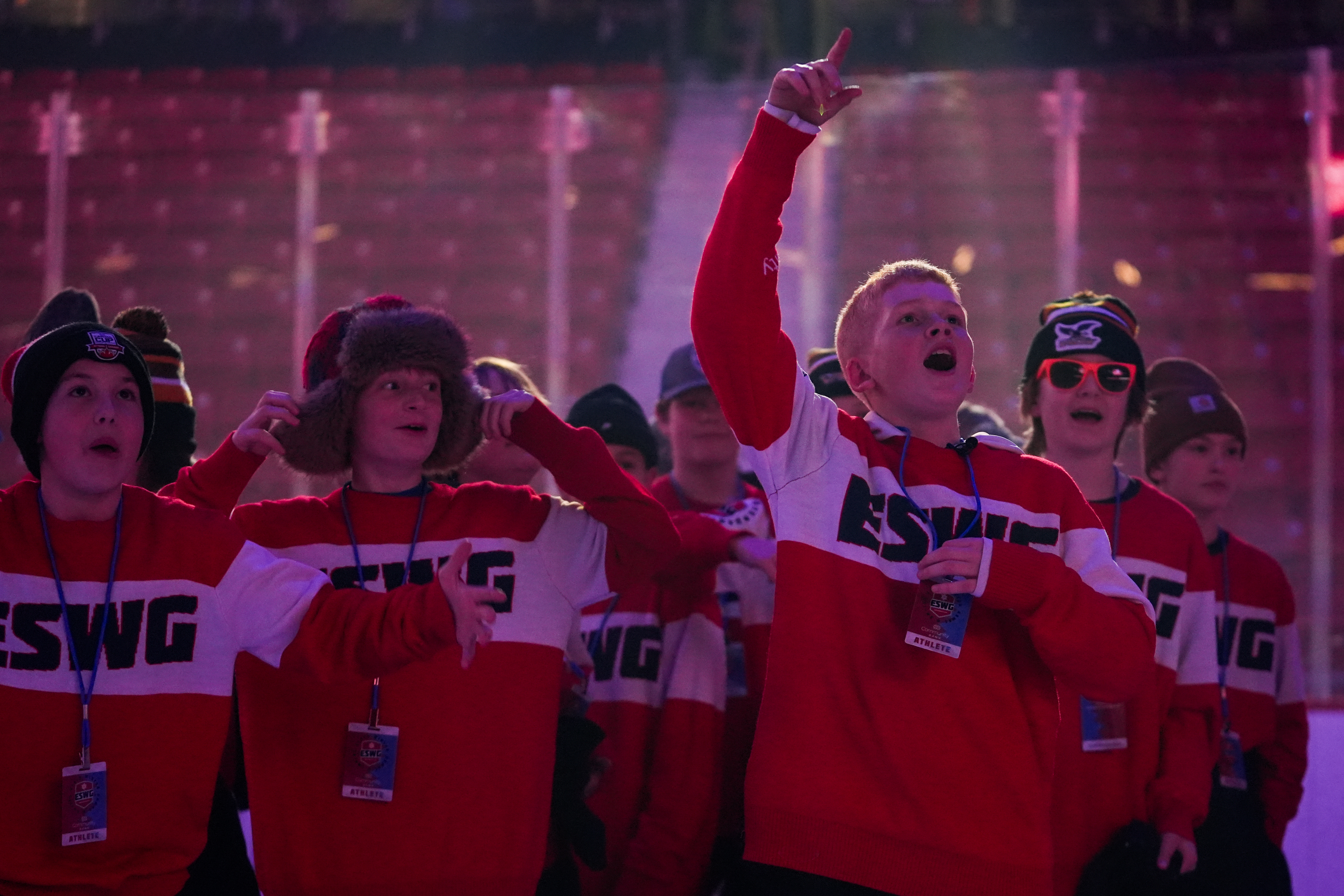 February 6, 2026Wes Brown hypes up his teammates during the opening ceremony of the Empire State Winter Games at the 1980 Arena on Thursday, February 5, in Lake Placid, New York. (Jack Henry/The Newhouse School)