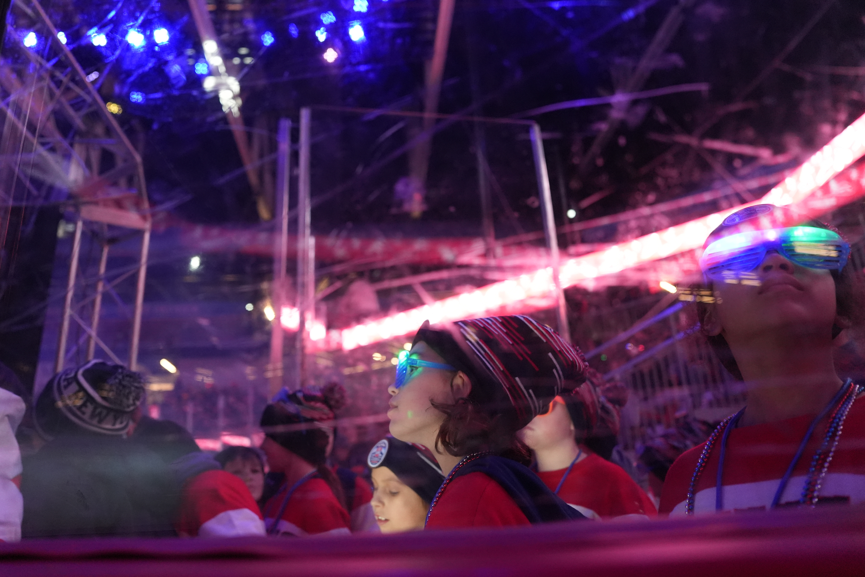 Hockey players look into the 1980 Rink stands as the Empire State Winter Games Opening Ceremony begins in Lake Placid, New York. February 5, 2026. (Reed Granger/The Newhouse School)