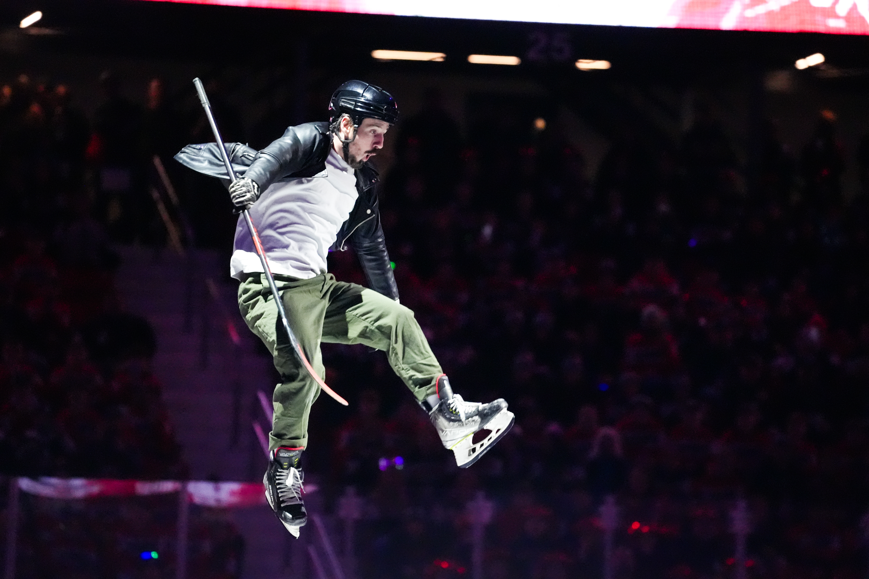February 6, 2026The Turbo Twins perform aerial stunts on ice skates for the athletes at the 1980 Rink in Lake Placid, New York for the 2026 Empire State Winter Games. Feb 5, 2026. (Troy Conner/The Newhouse School)