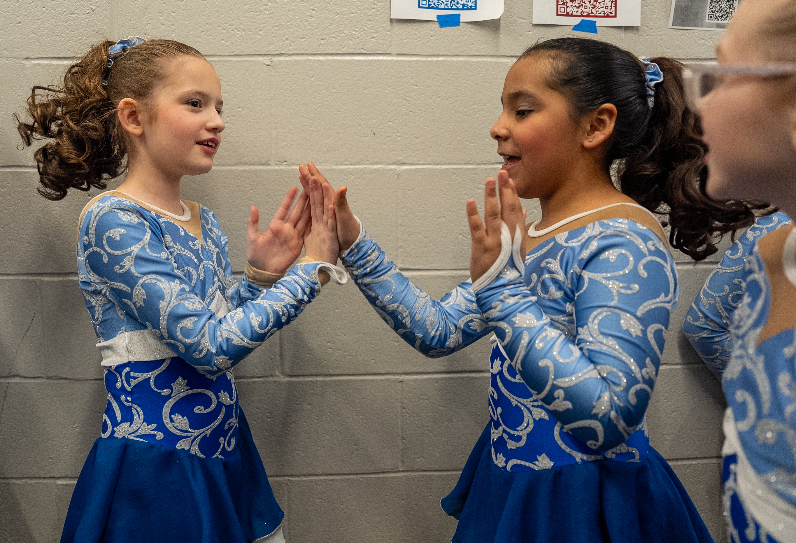 February 8, 2026Figure skaters high five at The Olympic Center in Lake Placid, N.Y. at the Empire State Winter Games on Sunday, Feb. 8. (Sky Zhuang/The Newhouse School)