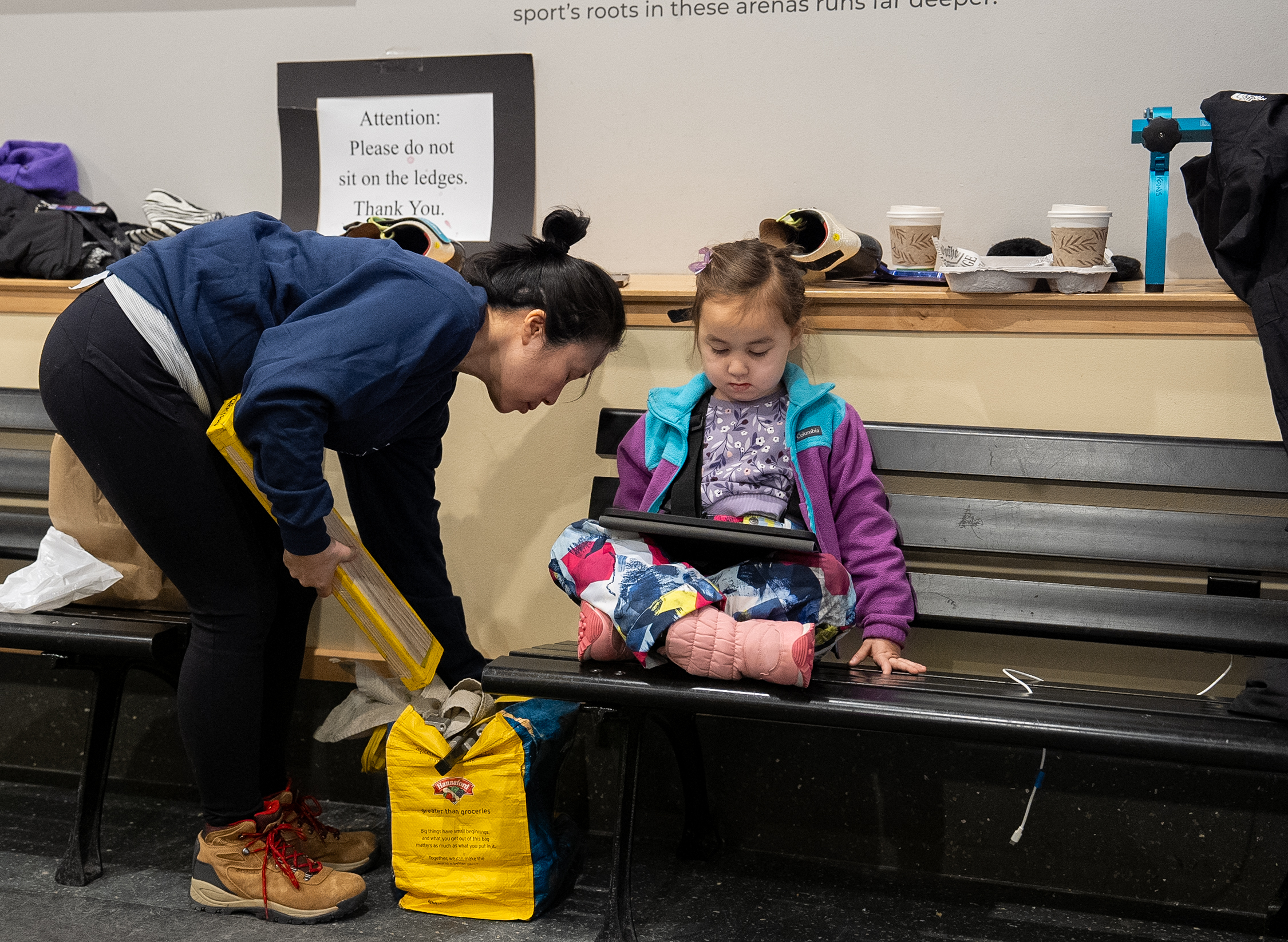 February 8, 2026Young child entertains herself at The Olympic Center in Lake Placid, N.Y. at the Empire State Winter Games on Sunday, Feb. 8. (Sky Zhuang/The Newhouse School)
