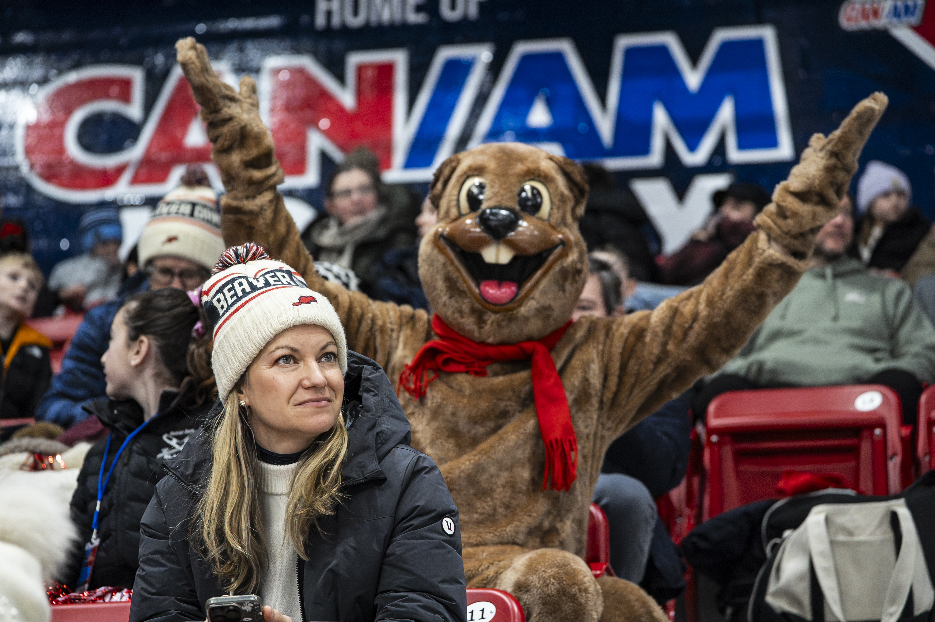 February 9, 2026Family members and Beaver, the mascot, watch figure skaters compete during the 2026 Empire State Winter Games in the 1980 Rink at the Olympic Center in Lake Placid, New York, on Feb. 8, 2026. (Alexa Hernandez/The Newhouse School)