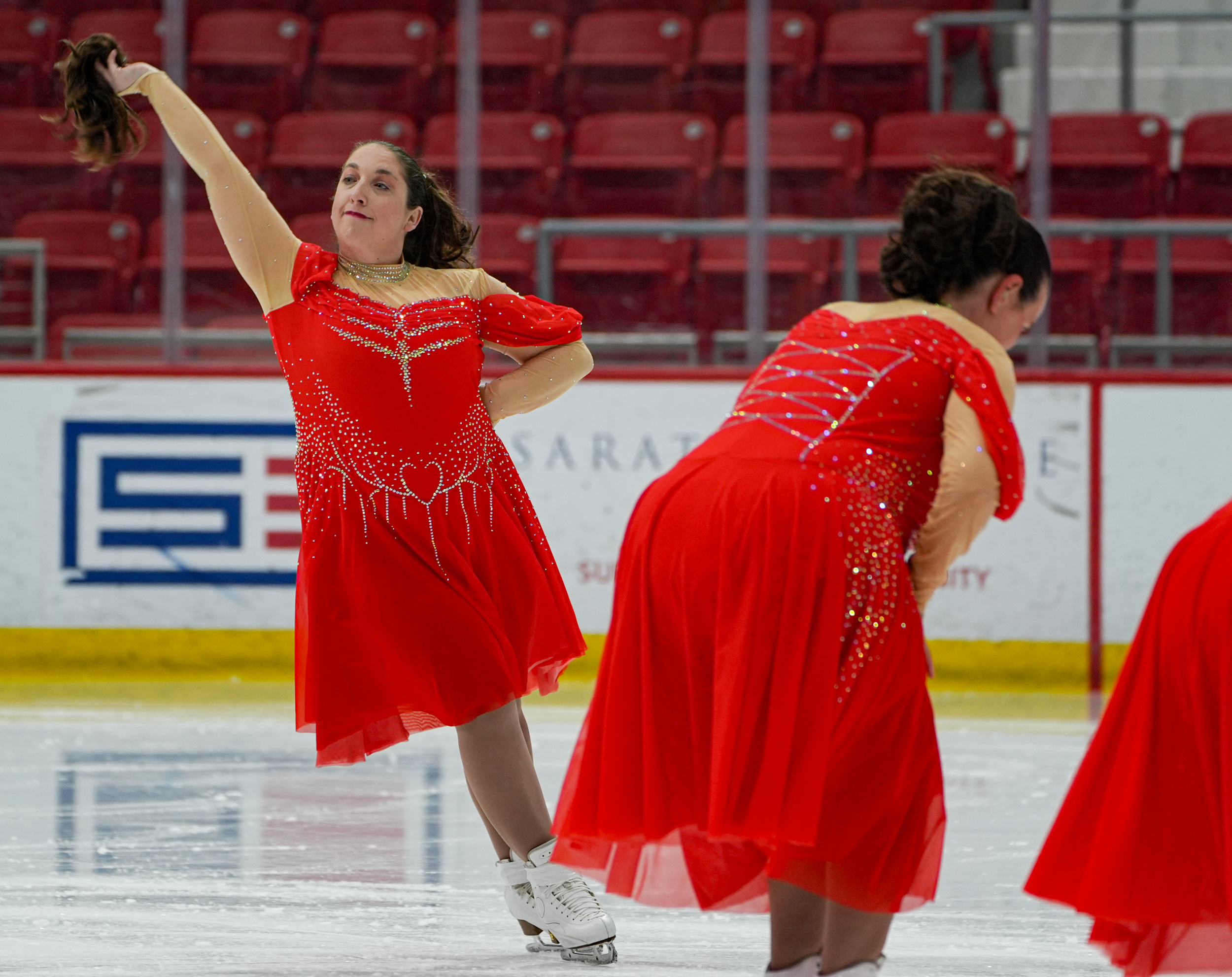 February 8, 2026The Synchro Stars finishes the routine with a twist, after a teammate’s faux ponytail falls onto the ice. Scenes from the synchronized skating at the 2026 Empire State Winter Games in the 1980 Rink at the Olympic Complex in Lake Placid, New York, on Feb. 8, 2026. (Cassie Roshu/The Newhouse School)