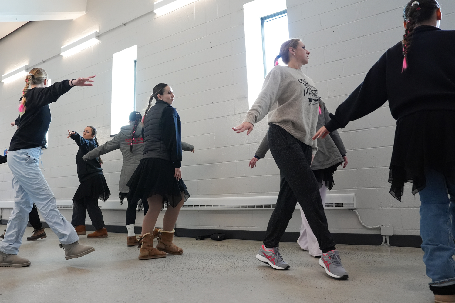 February 8, 2026Synchronized skaters practice their routine in the hallways of the Olympic Complex at the Empire State Winter Games in Lake Placid, NY on Feb. 8, 2026. (Adeline Taylor/ Newhouse School)