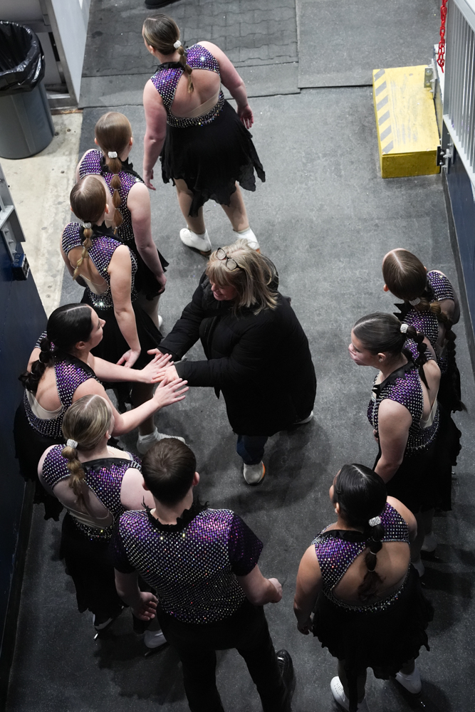 February 8, 2026The coach of the CNY Avalanche Synchronized Skating Team encourages her team before they take the ice at the Empire State Winter Games at the 1980 Arena at the Olympic Center in Lake Placid, NY on Feb. 8, 2026. (Adeline Taylor/ Newhouse School)