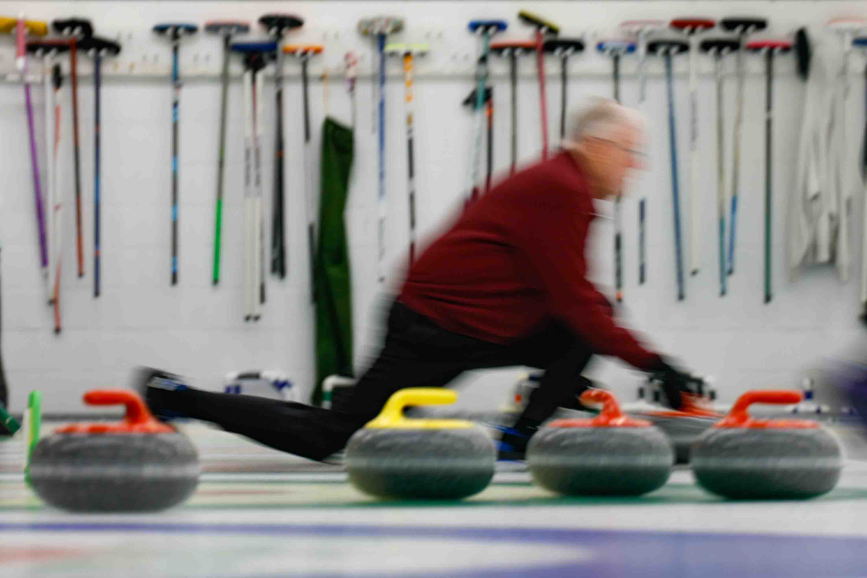 February 2, 2026The Empire State Winter Games curling finals took place on Sunday, Febuary, 1, 2026 at the Utica Curling Club. Player captured sliding the rock down towards the target.